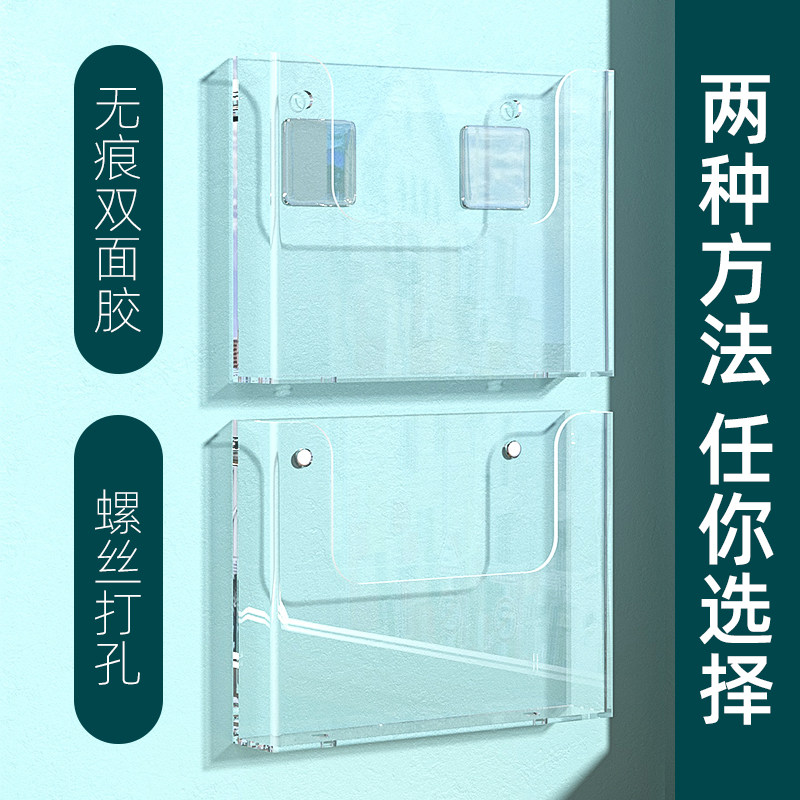 文件收纳挂墙 墙面文件夹 文件架壁挂亚克力展示架放a4单页纸的资料架挂墙式a5插页透明夹子宣传挂壁式架