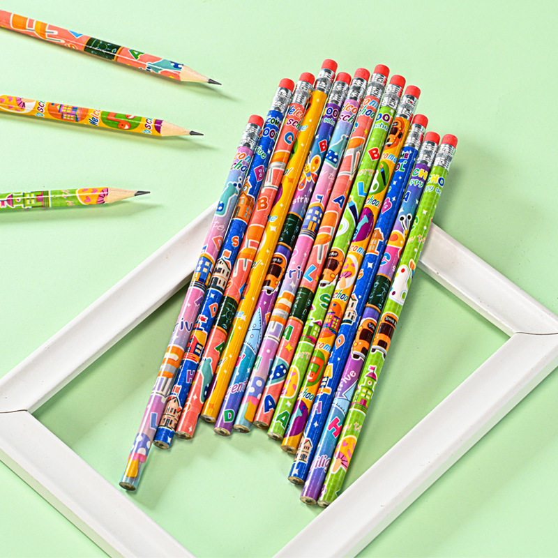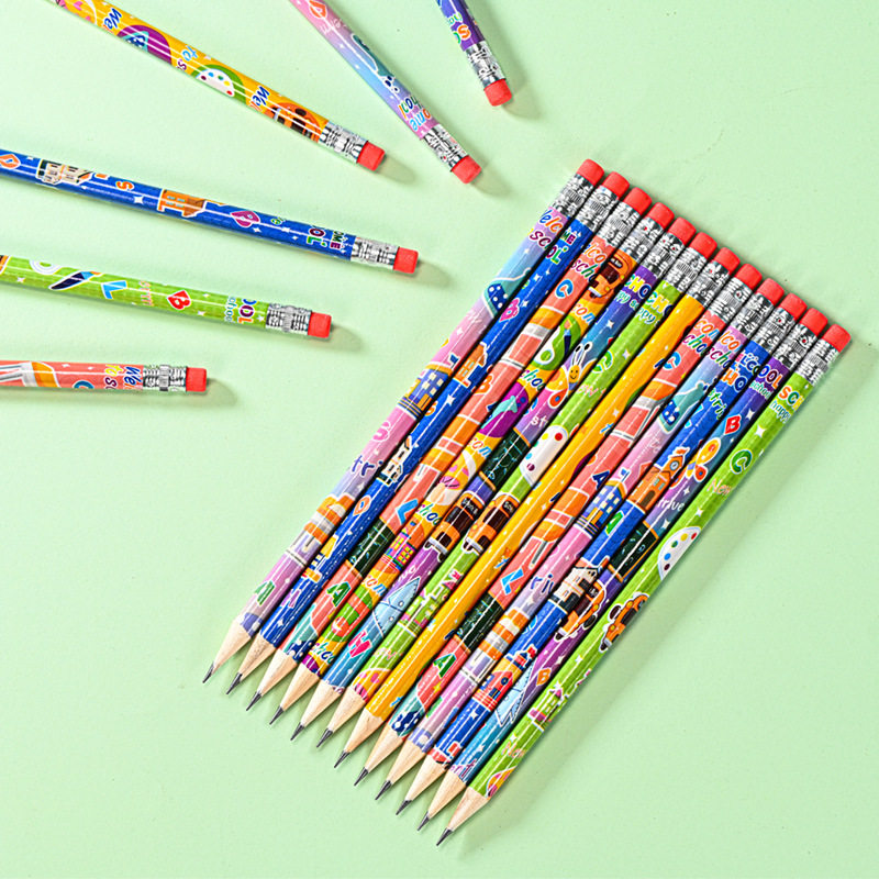 混色卡通铅笔HB铅笔考试专用hb书写铅笔无铅毒小学生幼儿园儿童学习用橡皮不易断原木硬度开学铅芯铅笔批发
