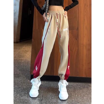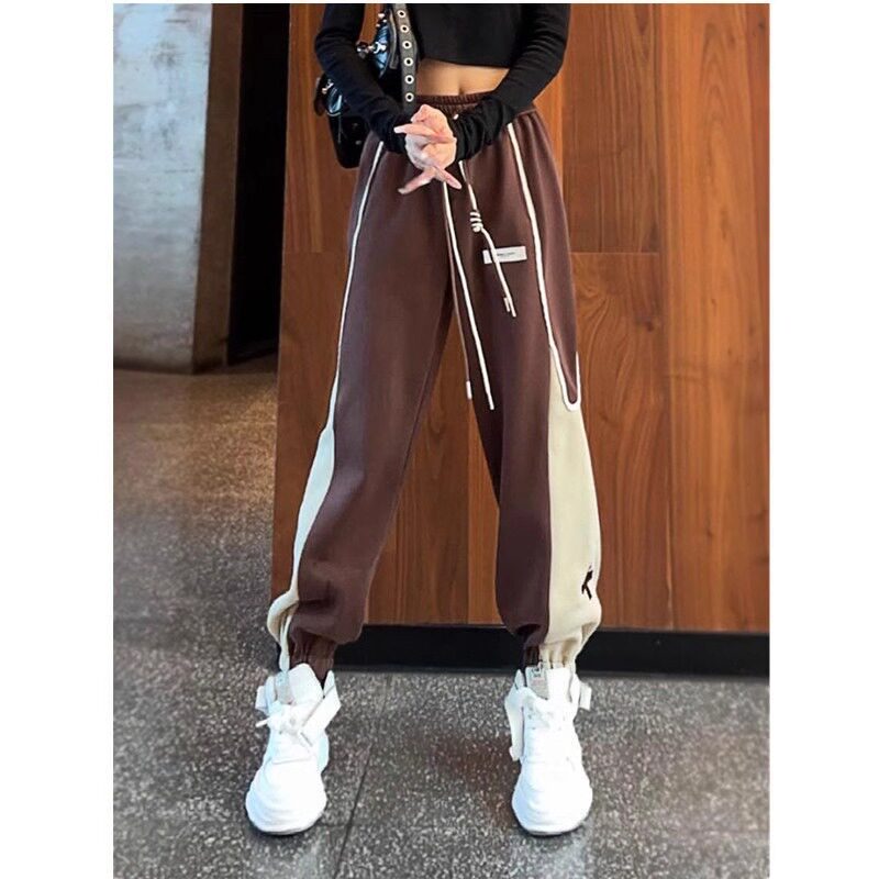 撞色拼接休闲束脚卫裤女2024秋冬新款时尚高腰显瘦百搭运动哈伦裤