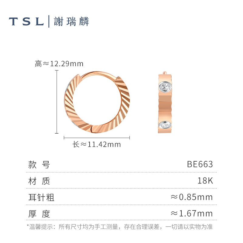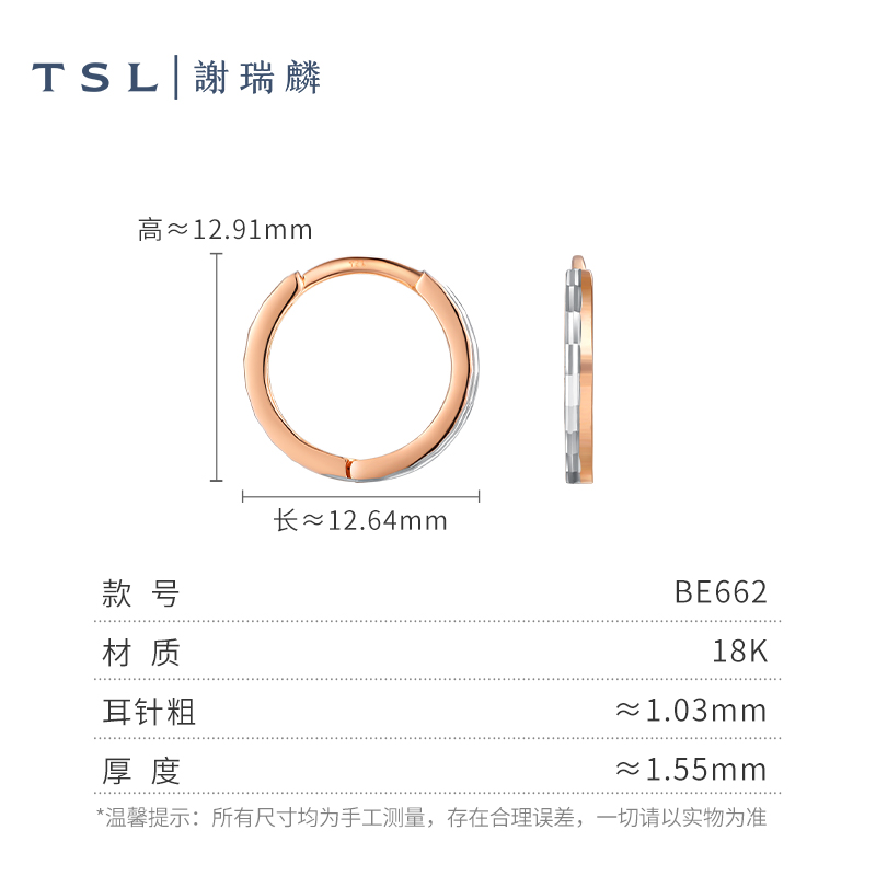 TSL谢瑞麟圆环18K金耳环素金耳饰圆环双环耳圈BBE661-663