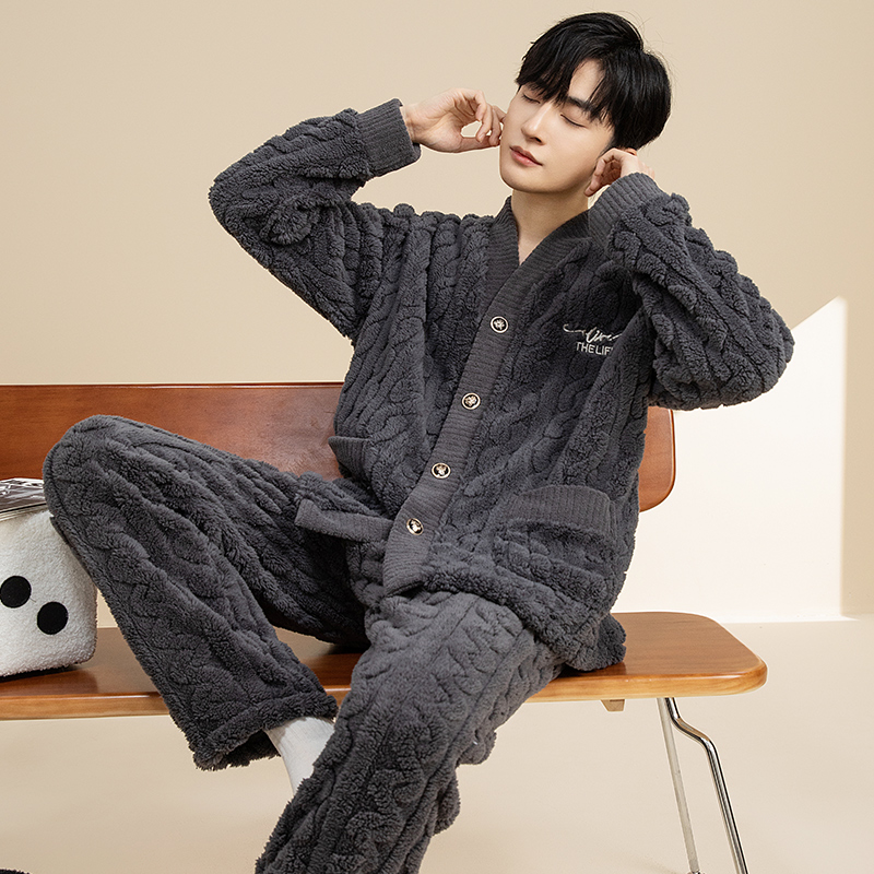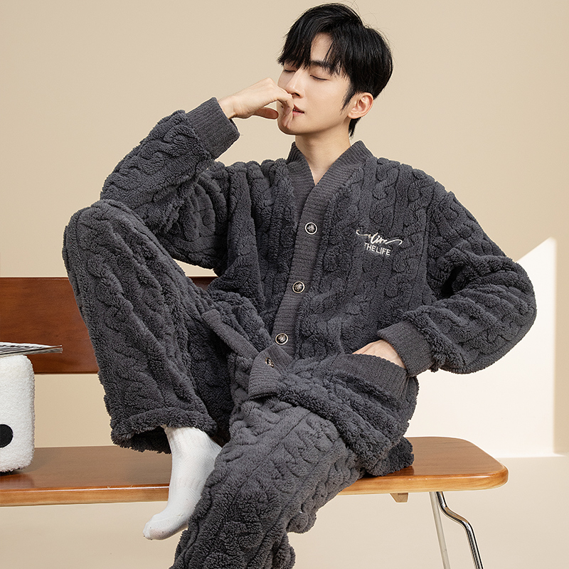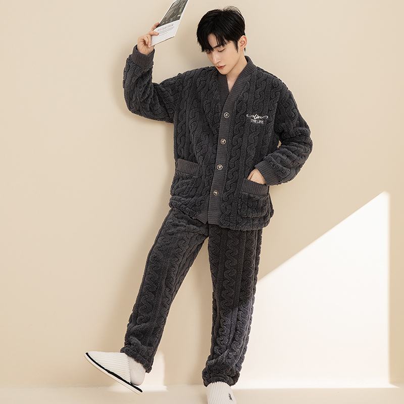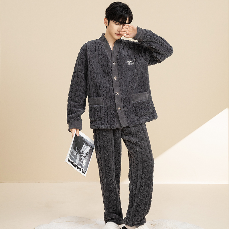冬季高级感男士睡衣秋款2025新款男秋季珊瑚绒男款加绒加厚家居服