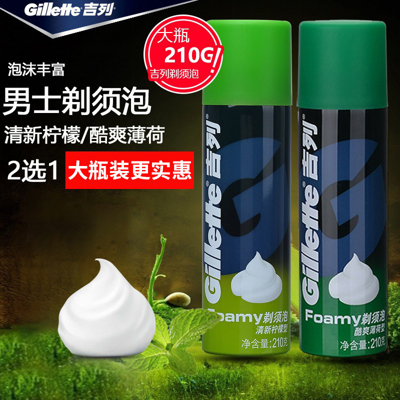 吉列剃须泡沫210g清新柠檬型男士剃须刀刮胡泡吉列剃须膏刮胡膏
