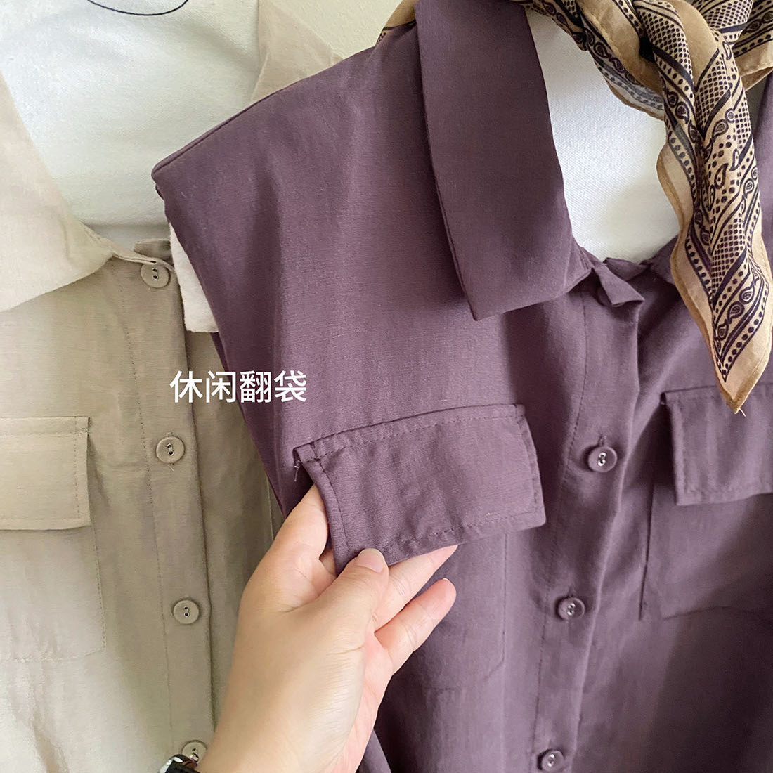 赫本风气质POLO领棉麻无袖连衣裙女夏季腰带款单排扣收腰显瘦长裙
