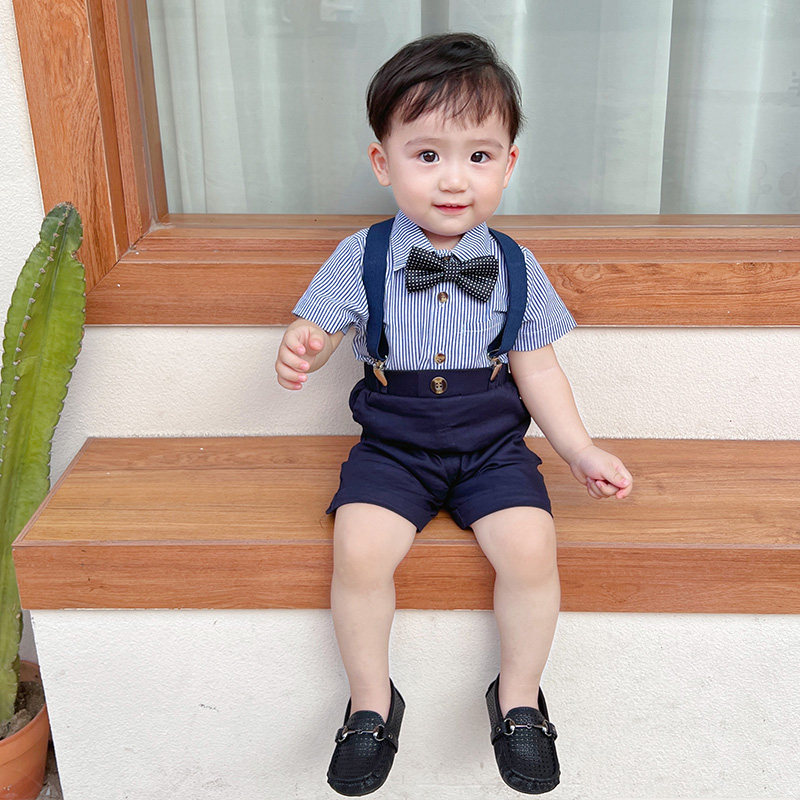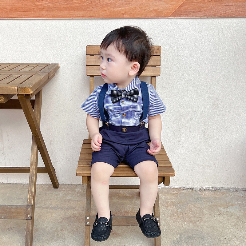 男童夏季套装婴儿衣服男宝宝绅士背带裤一周岁礼服婚礼花童西装潮