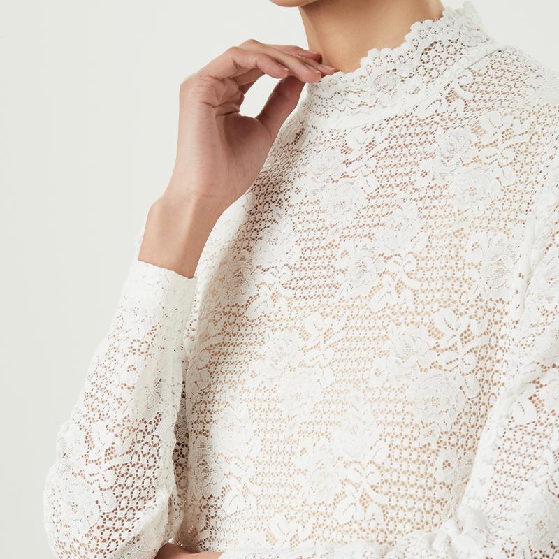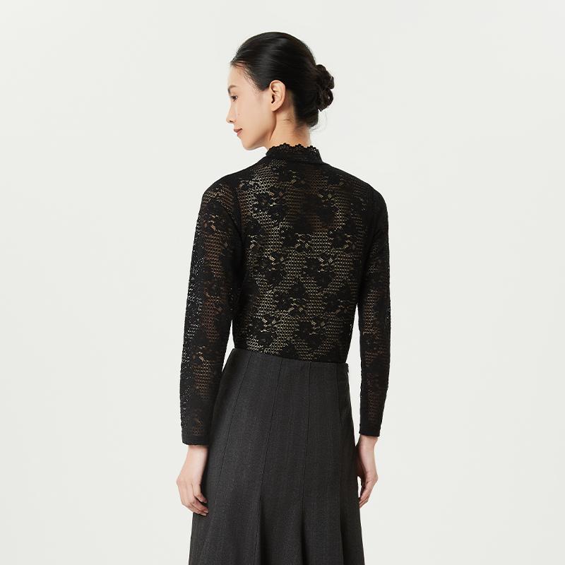 【专柜同款】浅秋镂空钩花蕾丝长袖打底衫25新款春季半高领内搭女