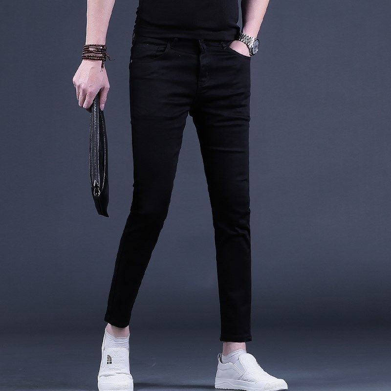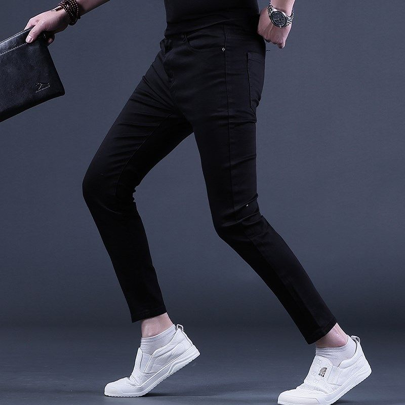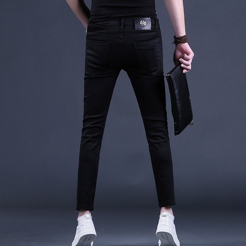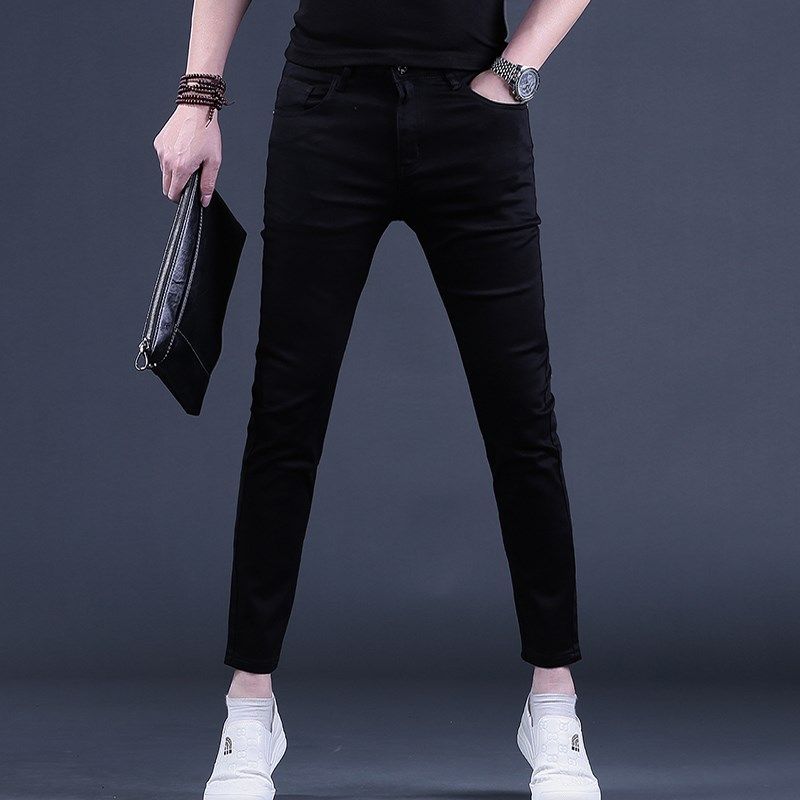 纯黑色裤子男九分裤男士牛仔裤潮流修身小脚9分休闲夏季潮牌男裤