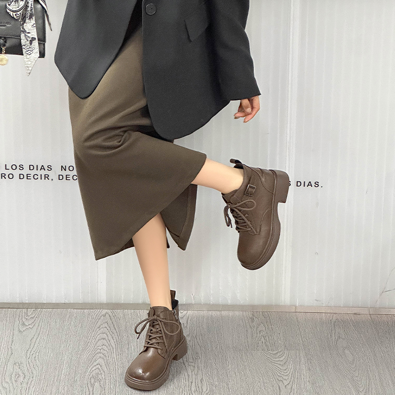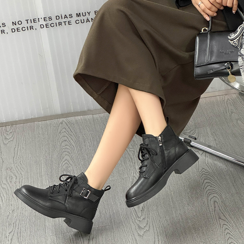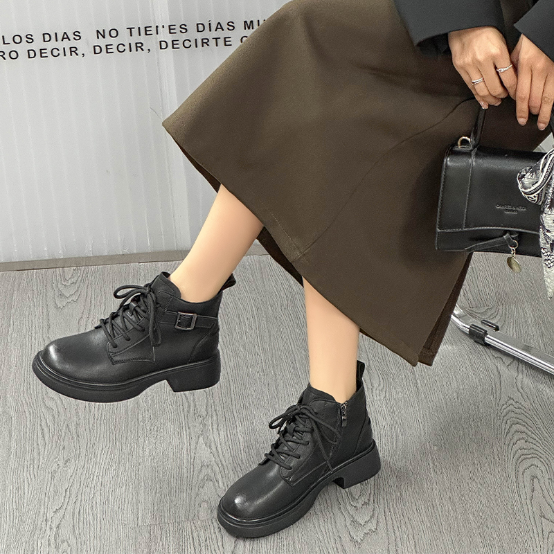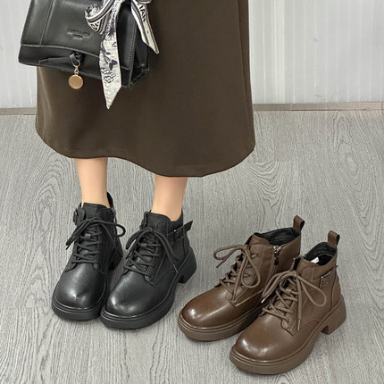 厚底马丁靴女2024秋冬新款侧拉链系带舒适百搭靴子英伦风瘦瘦短靴