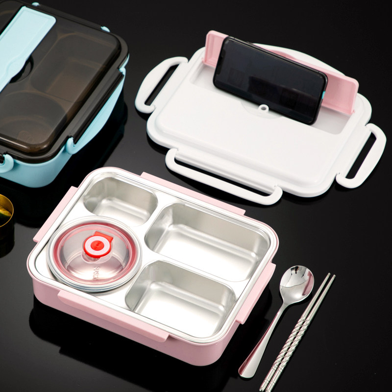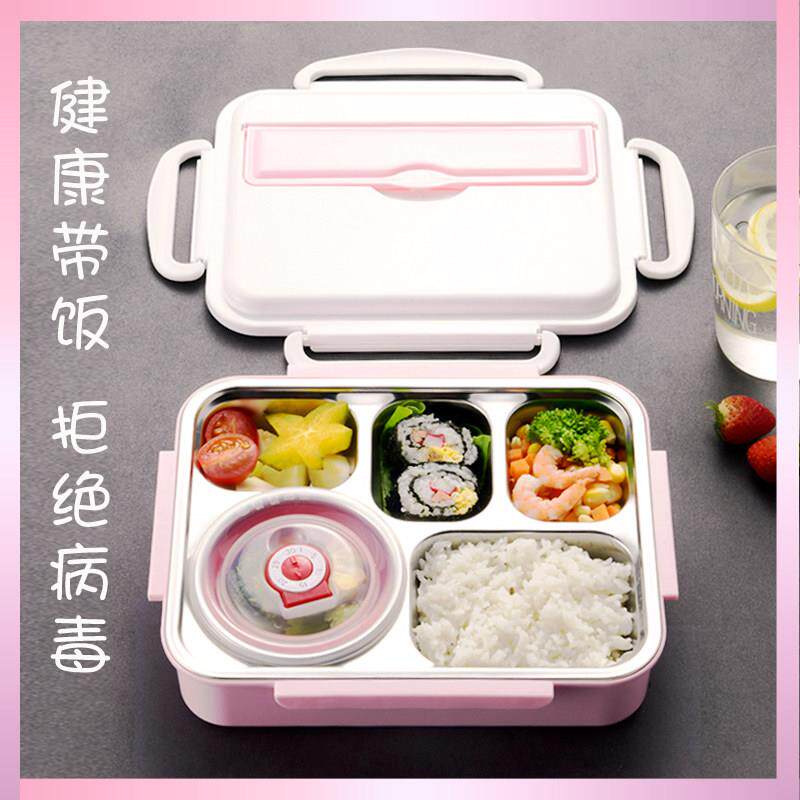 304防烫可携式饭盒保温餐盘四分格餐盒带餐具 带盖子不锈钢小学生
