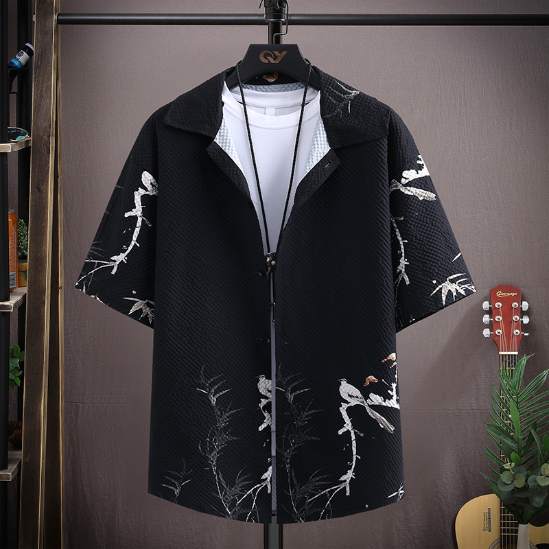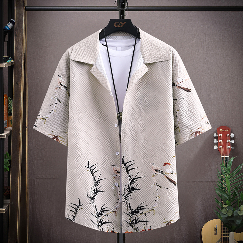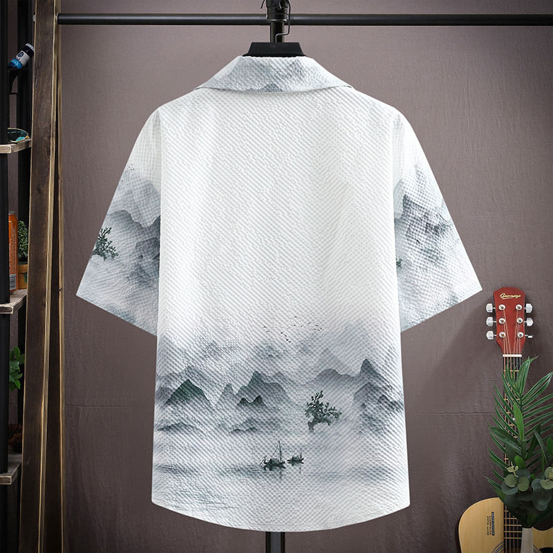 夏季新款国风休闲短袖衬衫男