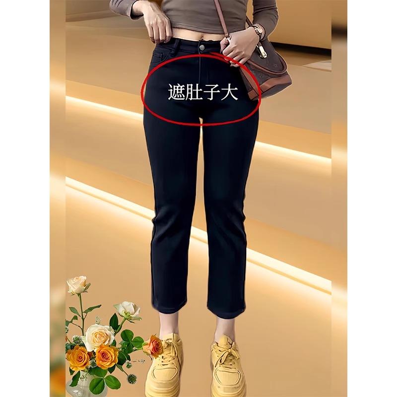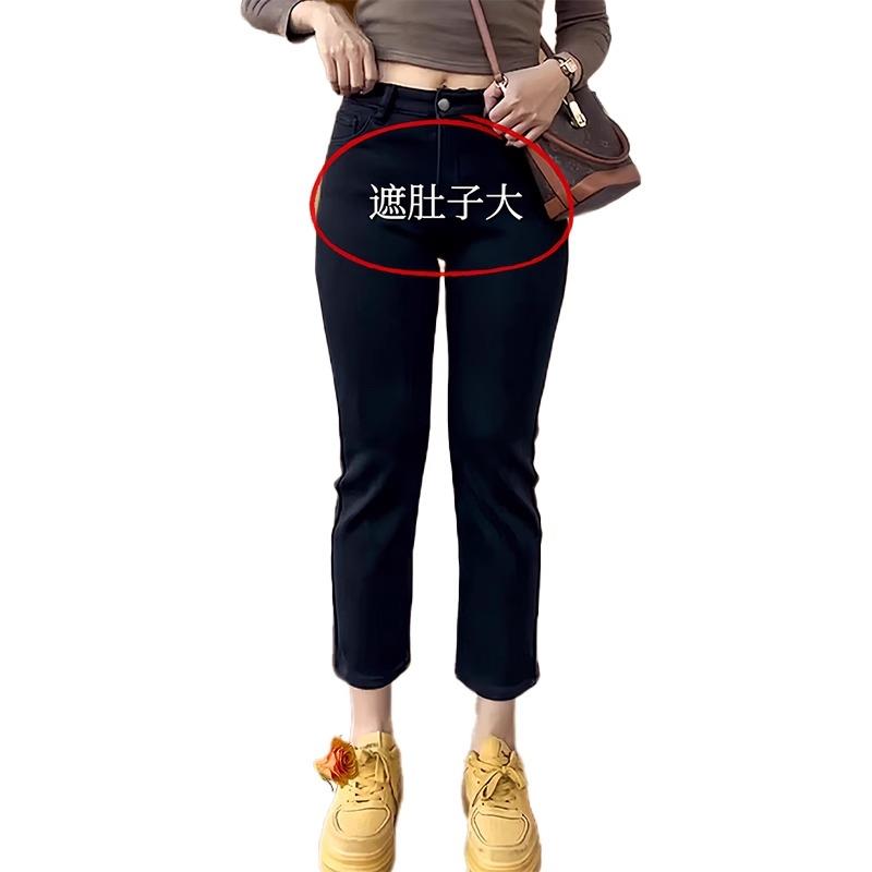 黑色高腰烟管裤女2025新款春秋夏季薄款直筒牛仔裤七八九分小个子