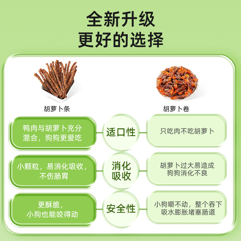 迪迪妈狗狗零食奖励胡萝卜鸭肉条宠物幼犬磨牙肉干泰迪比熊小型犬