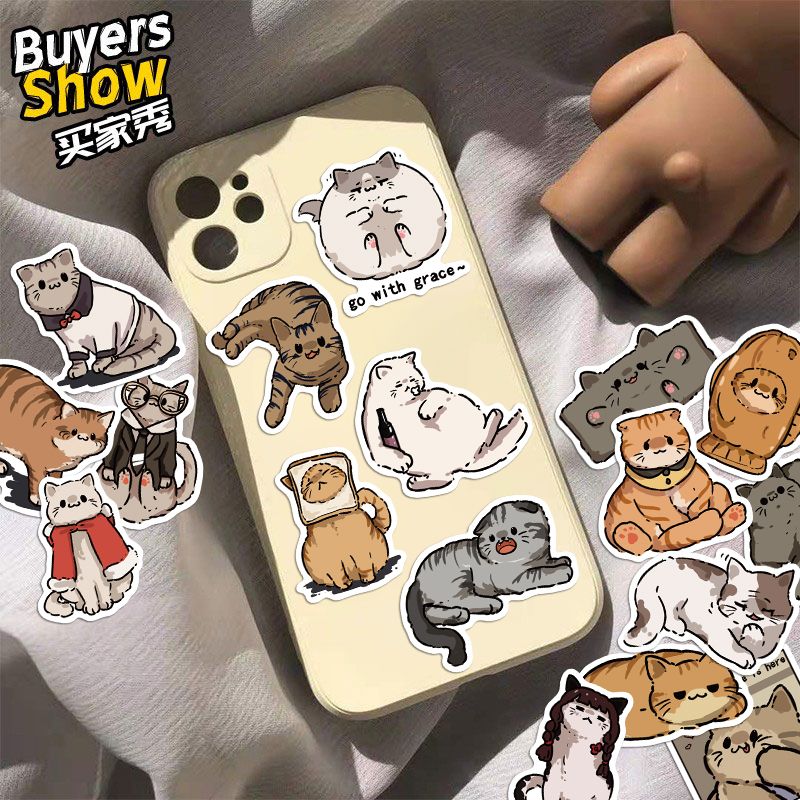 原创50张遇见小猫咪卡通可爱贴纸手机壳笔记本行李箱装饰防水贴纸