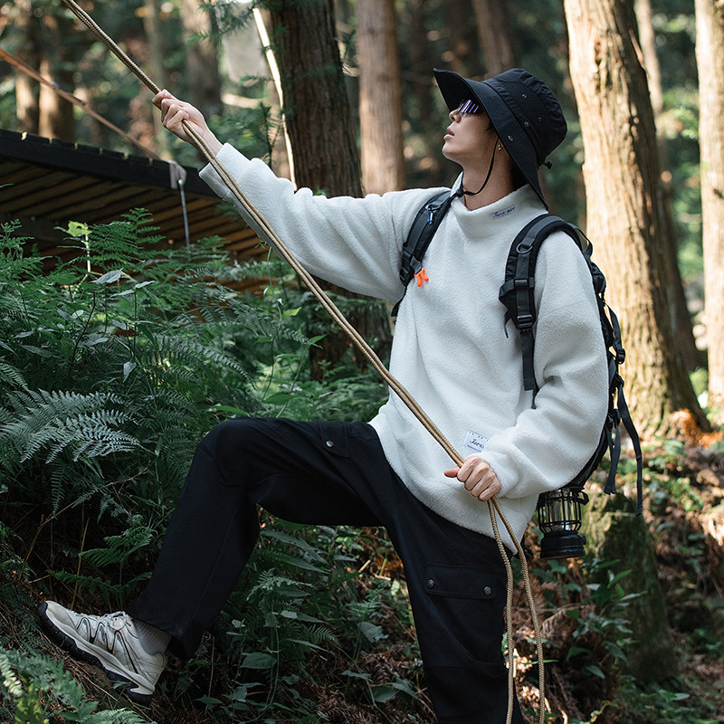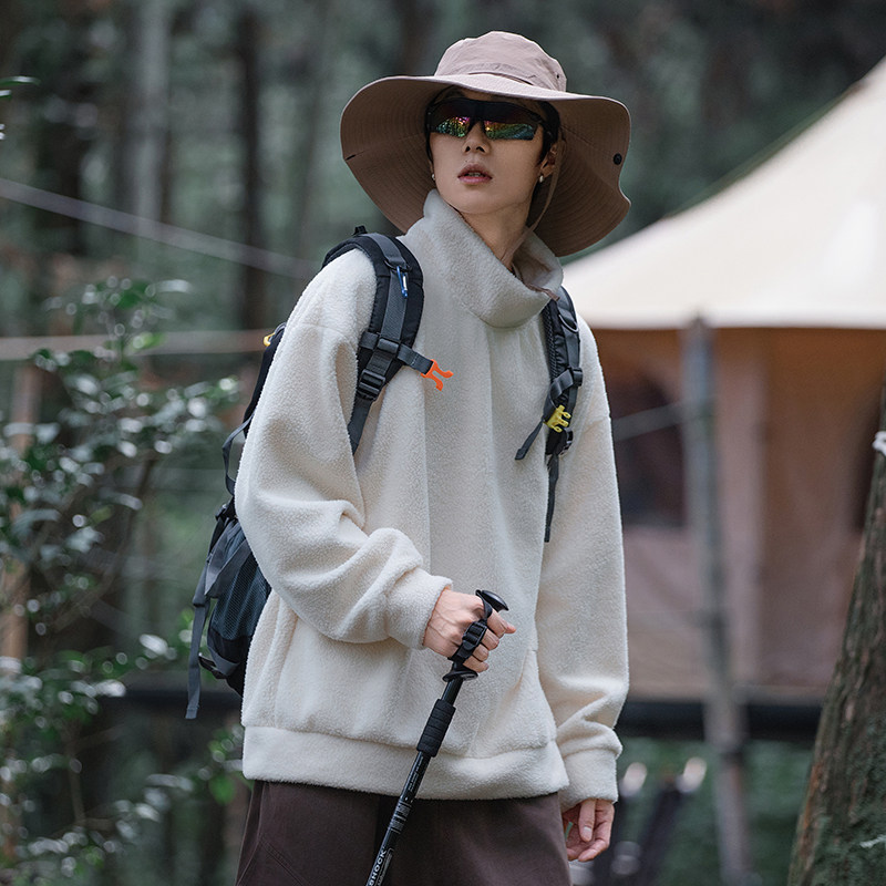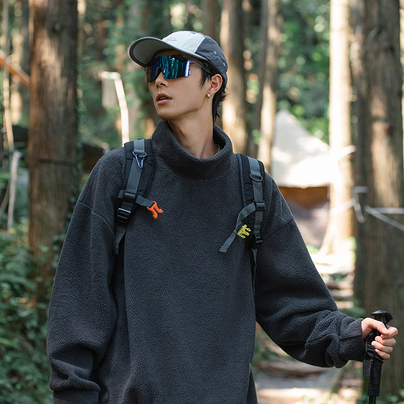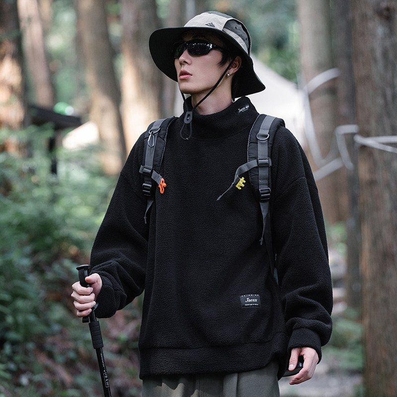 izexx潮牌 冬季新款 日系复古加绒加厚套头高领卫衣男女潮牌宽松