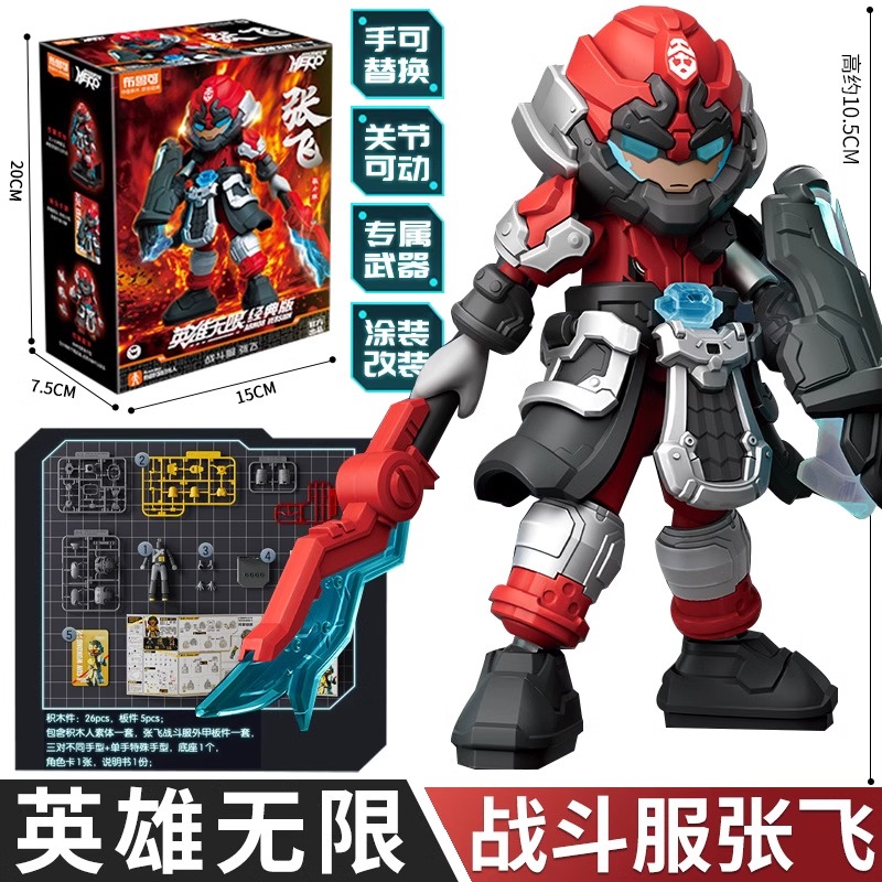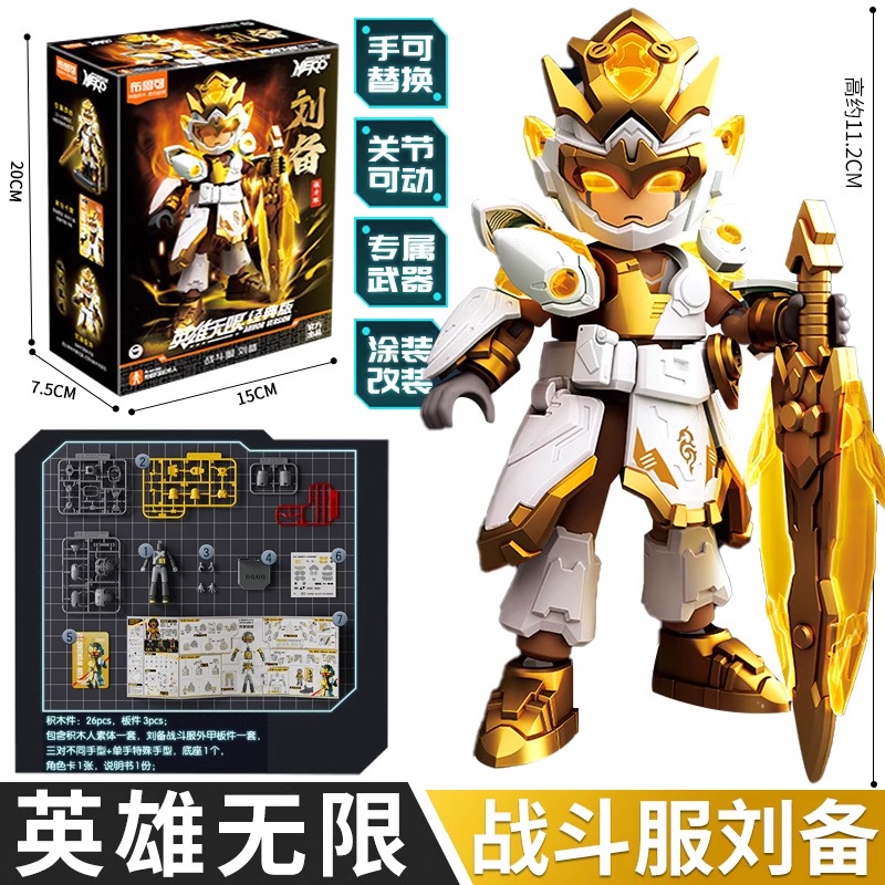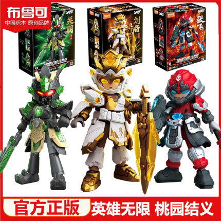新布鲁可克积木人英雄无限三国赵云刘备张飞手办吕布哪吒玩具男孩