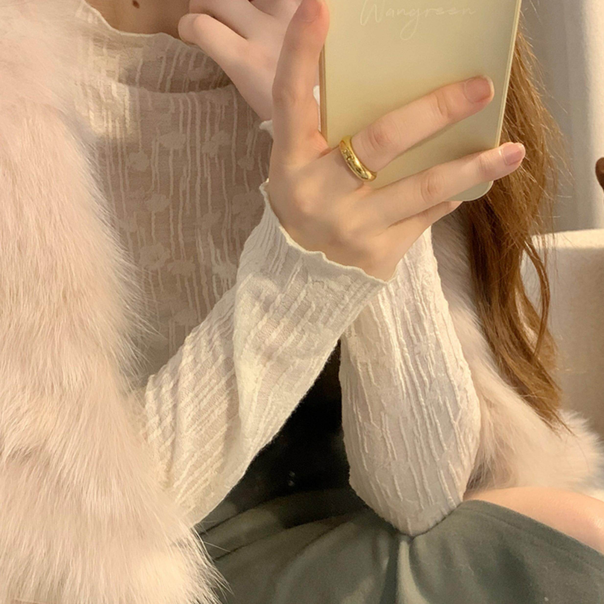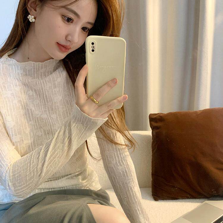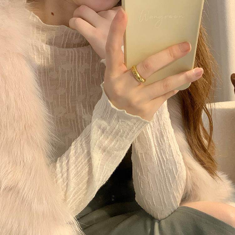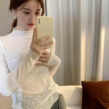 法式气质半高领长袖衬衫女秋冬设计感立体花朵蕾丝衫内搭打底上衣