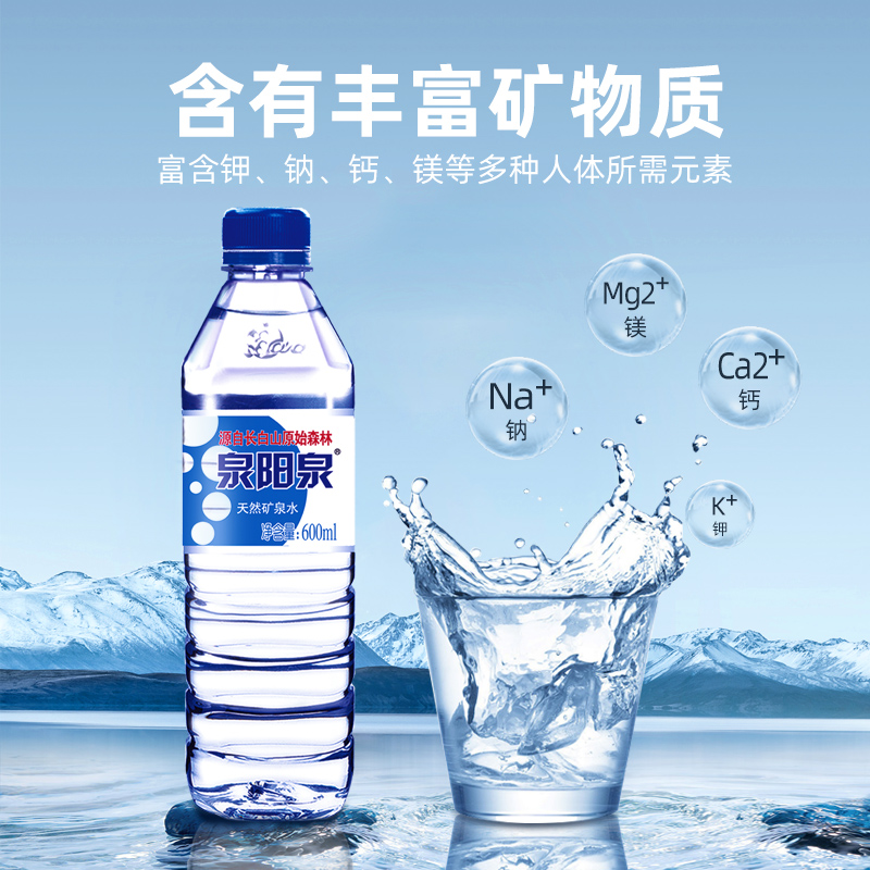 泉阳泉长白山600ml天然矿泉水整箱小瓶装车载饮用水弱碱性多规格