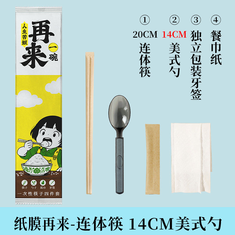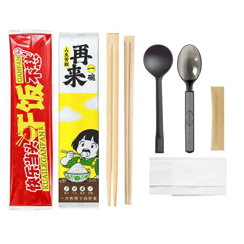 一次性筷子四件套竹筷子外卖筷子勺子套装一次用餐具三四件餐具包