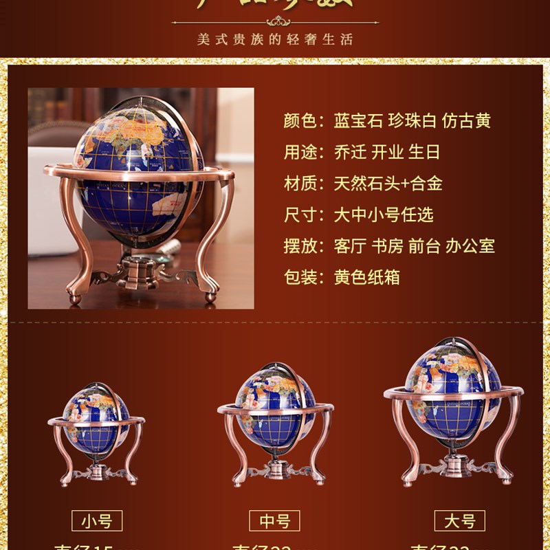 欧式宝石地球仪摆件32cm大号办公室书房装饰公司开业乔迁新居礼品