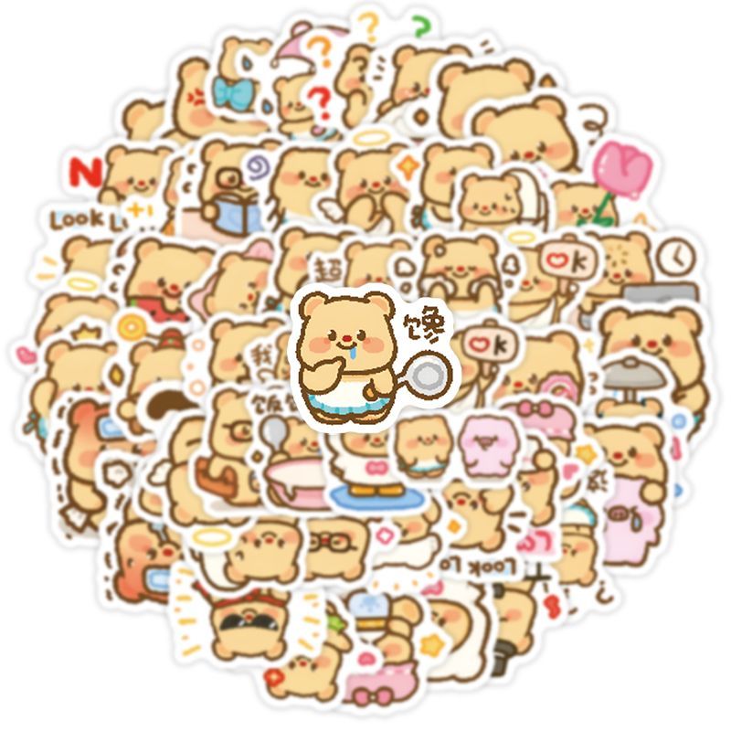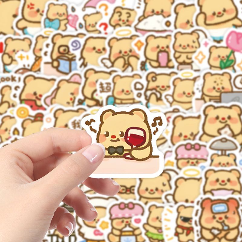 100张小红书黄油小熊表情包贴纸奶萌可爱个性手机行李箱防水贴画