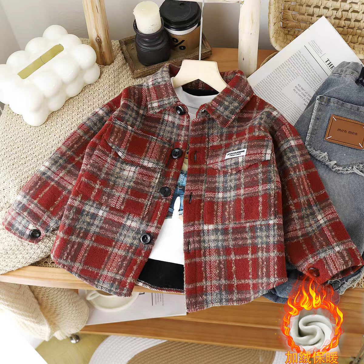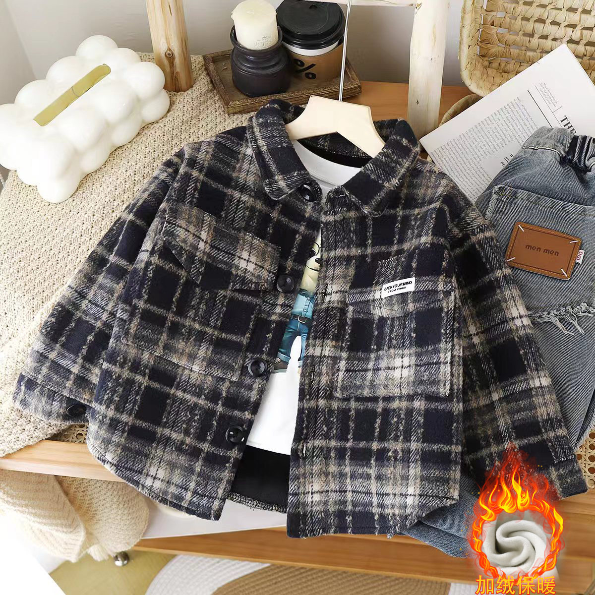 2025秋冬季儿童加绒加厚男女宝宝褂子上衣长袖上衣中小童衬衣