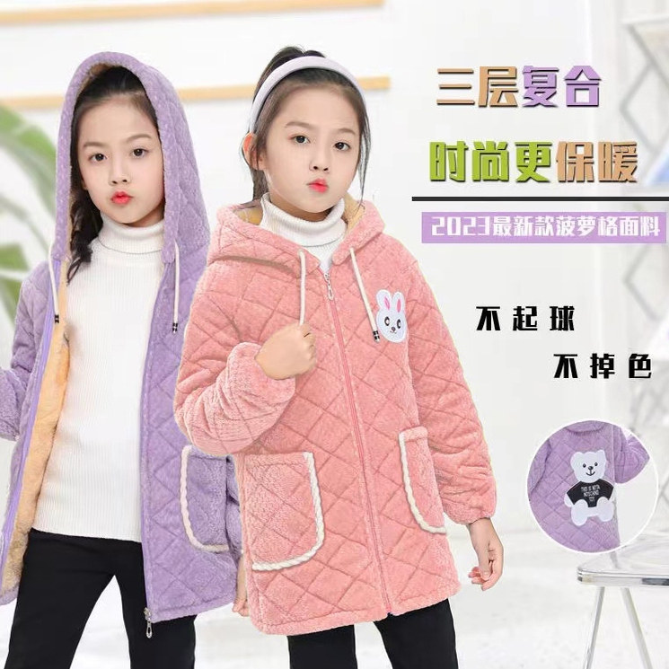 儿童罩衣洋气男女童加绒加厚宝宝冬季保暖反穿衣中长款秋冬孩外穿