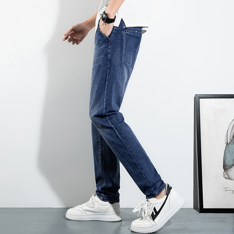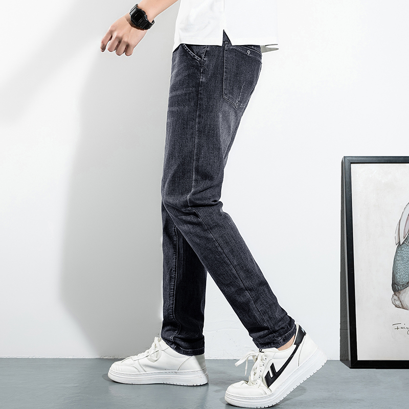 夏季薄款加长牛仔裤男115cm小脚修身弹力潮流韩版高个子男生裤子
