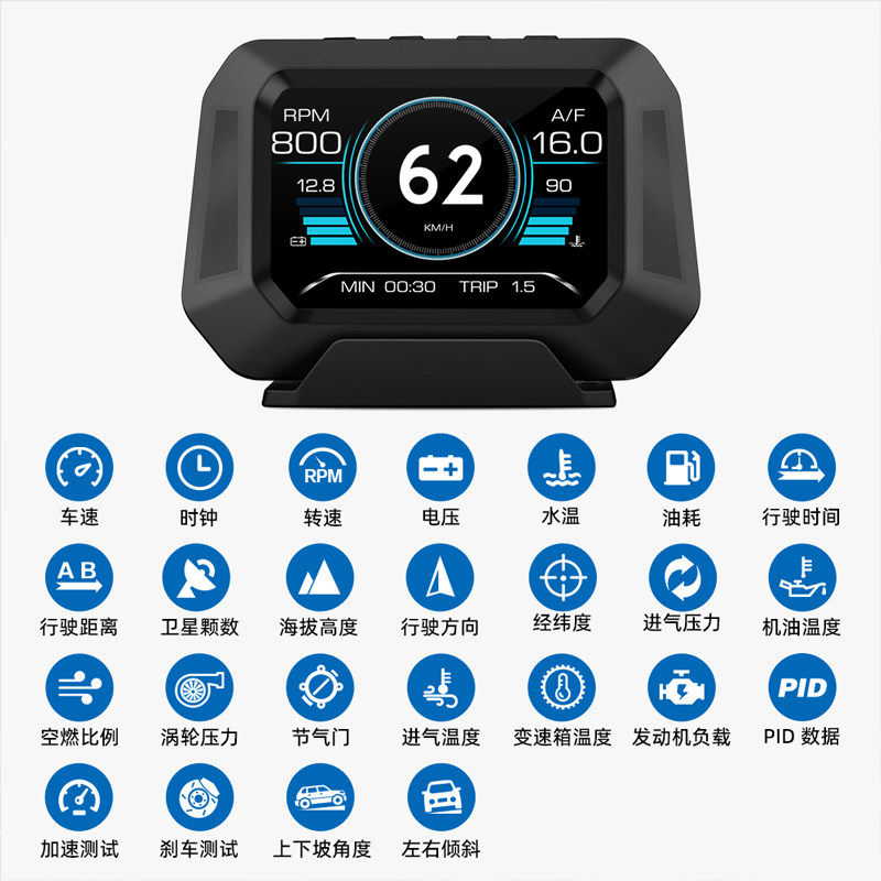 汽车OBD行车电脑越野车坡度仪检测仪智能油耗表海拔故障码改装