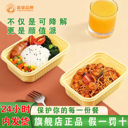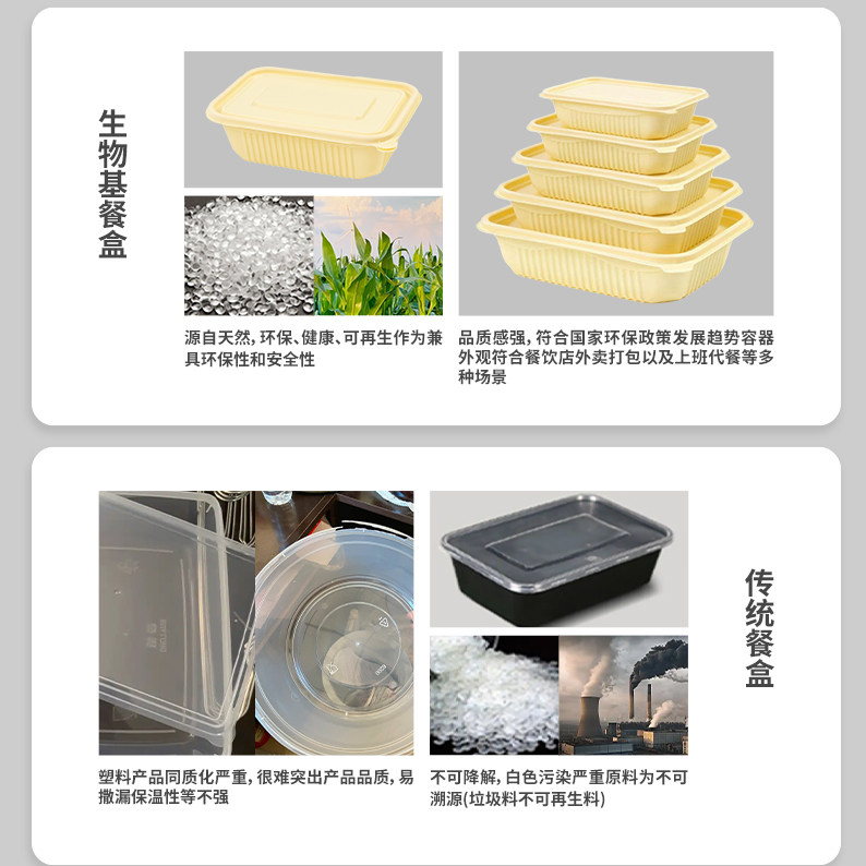 玉米淀粉餐盒一次性可降解打包盒餐饮外卖圆形方形饭盒带盖便当盒