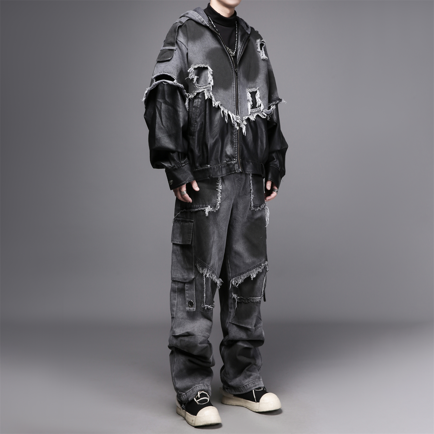 暗黑系废土风做旧水洗牛仔外套