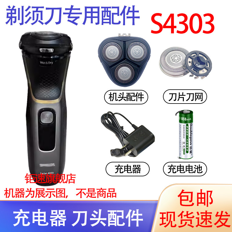 适用飞利浦剃须刀s4000 s4303 s3333 s3134刀头电池充电器配件