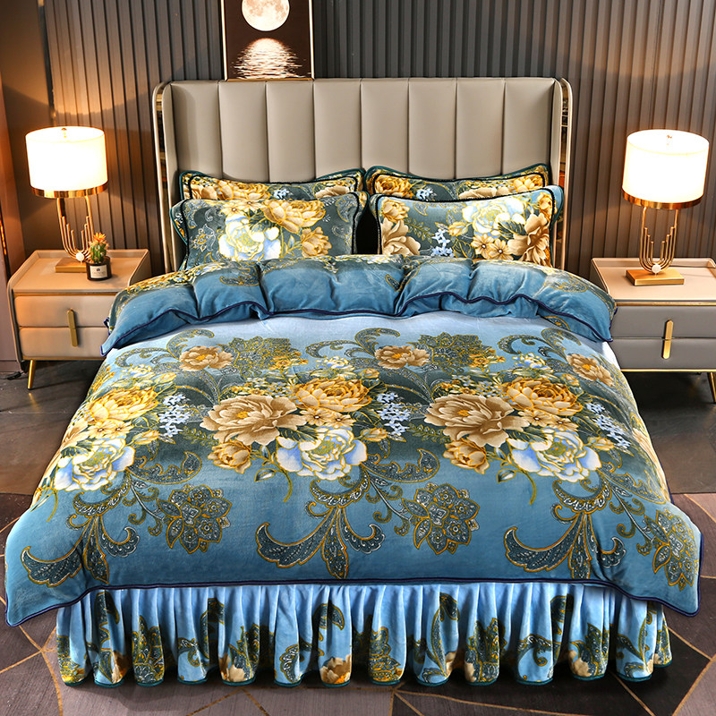 冬季珊瑚绒床上四件套加厚牛奶绒床裙双面被套加绒保暖法兰绒床单
