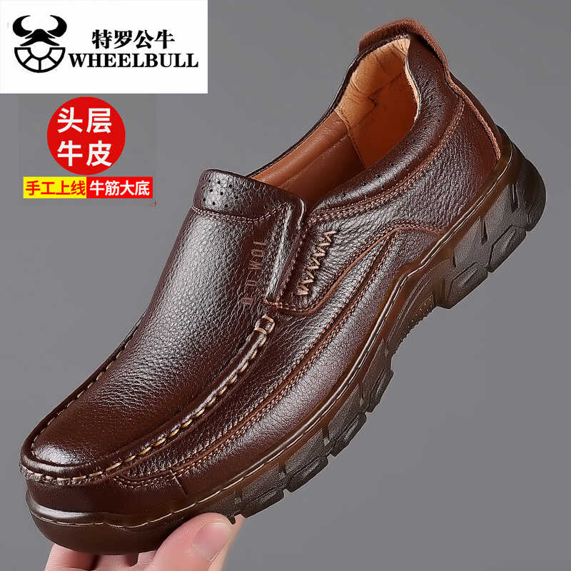 皮鞋男秋冬新款男士商务休闲皮鞋真皮牛筋底男鞋驾车鞋爸爸鞋防滑