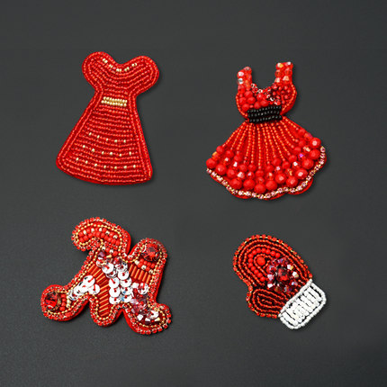 钉珠红色圣诞节字母浪漫裙子手套布贴小号服装包辅料DIY补丁贴花