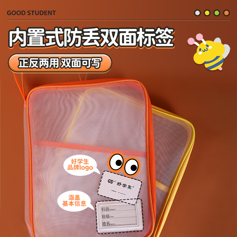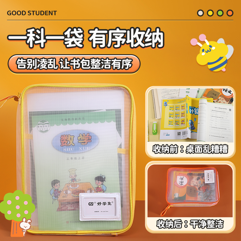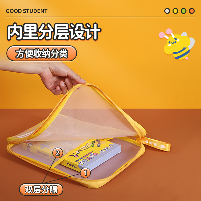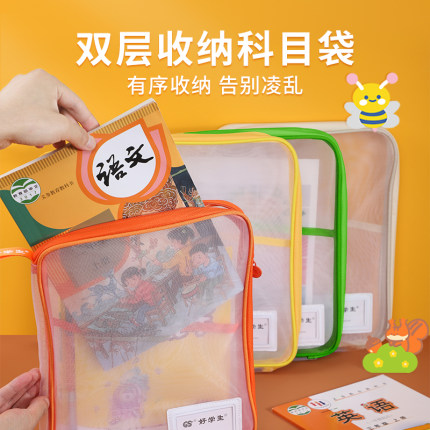中华好学生科目袋学科分类袋大容量小学生专用双层加厚收纳袋超大初中生透明拉链式课外班男女孩书包手提袋