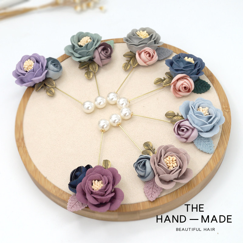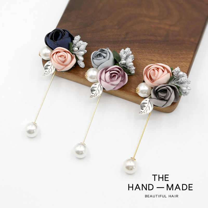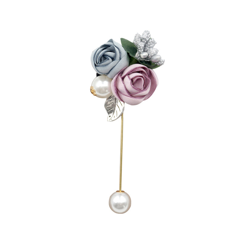 韩国一字胸针仿珍珠大气布艺花朵胸花丝巾扣外套别针扣开衫配饰女