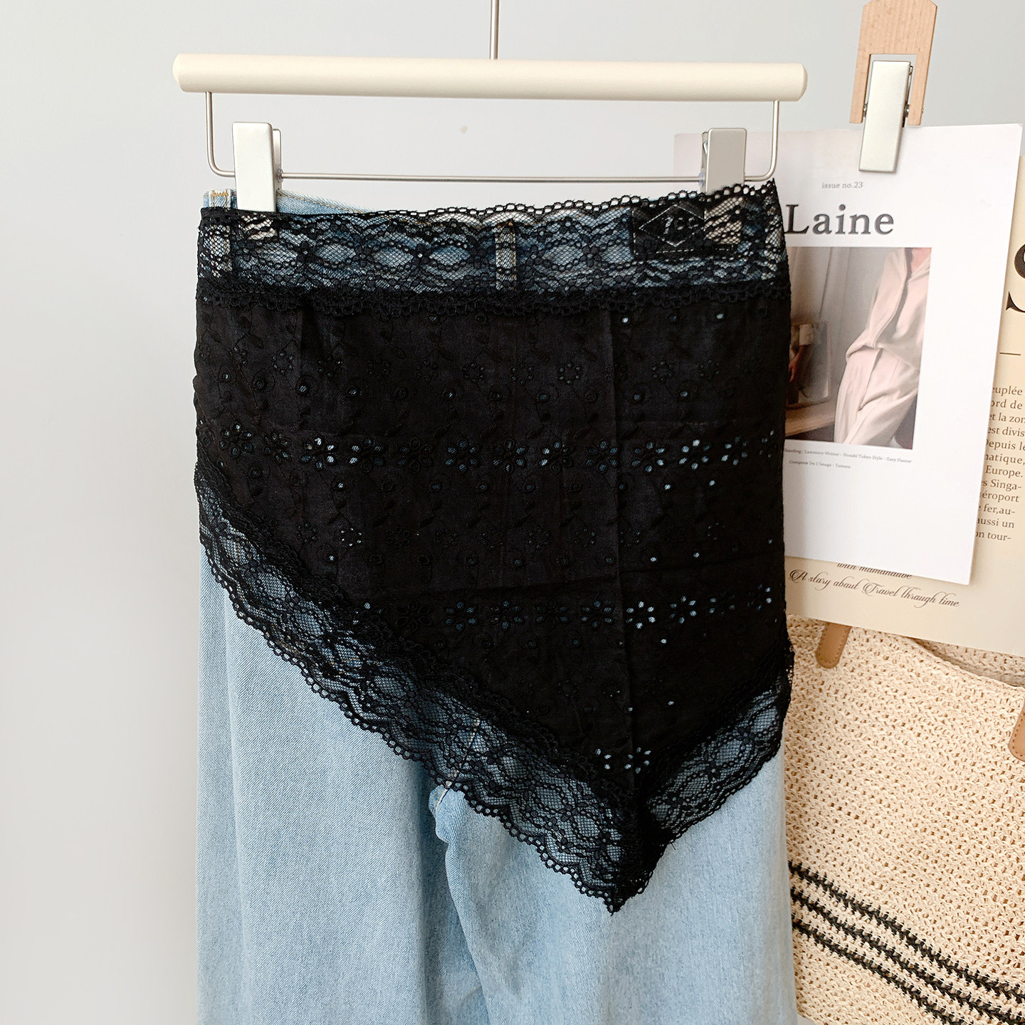纯色蕾丝镂空半身裙女士叠穿纱裙百搭韩系短裙屁帘春夏三角巾新款