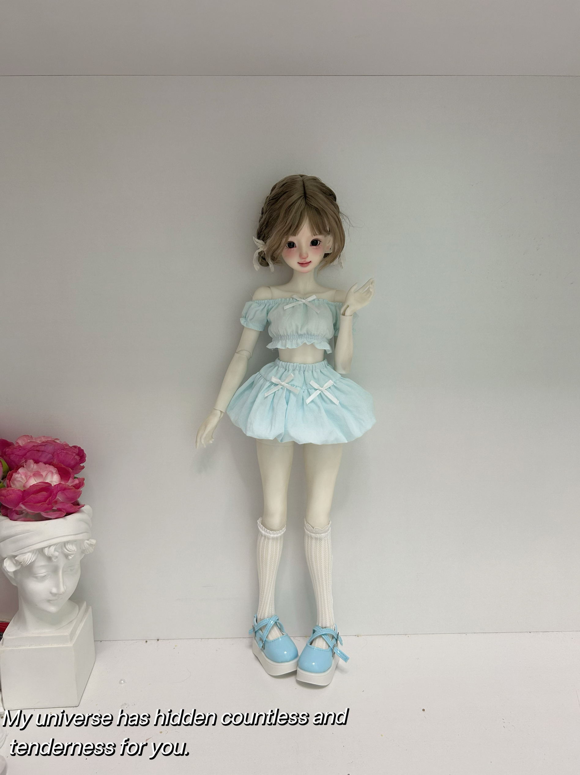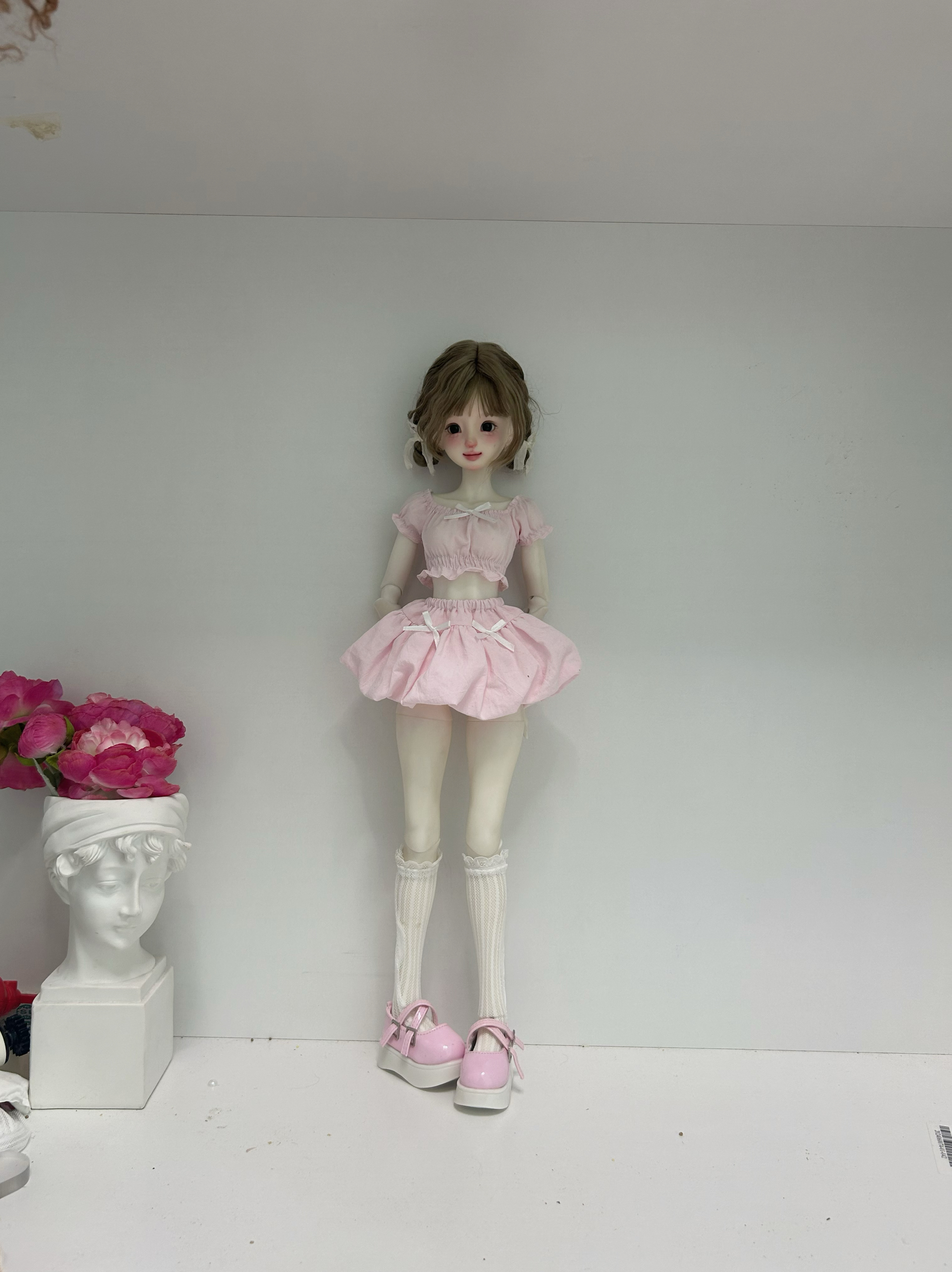 bjd四分六分娃衣纯欲风连衣裙泡泡袖上衣花苞短裙4/1娃娃衣服套装