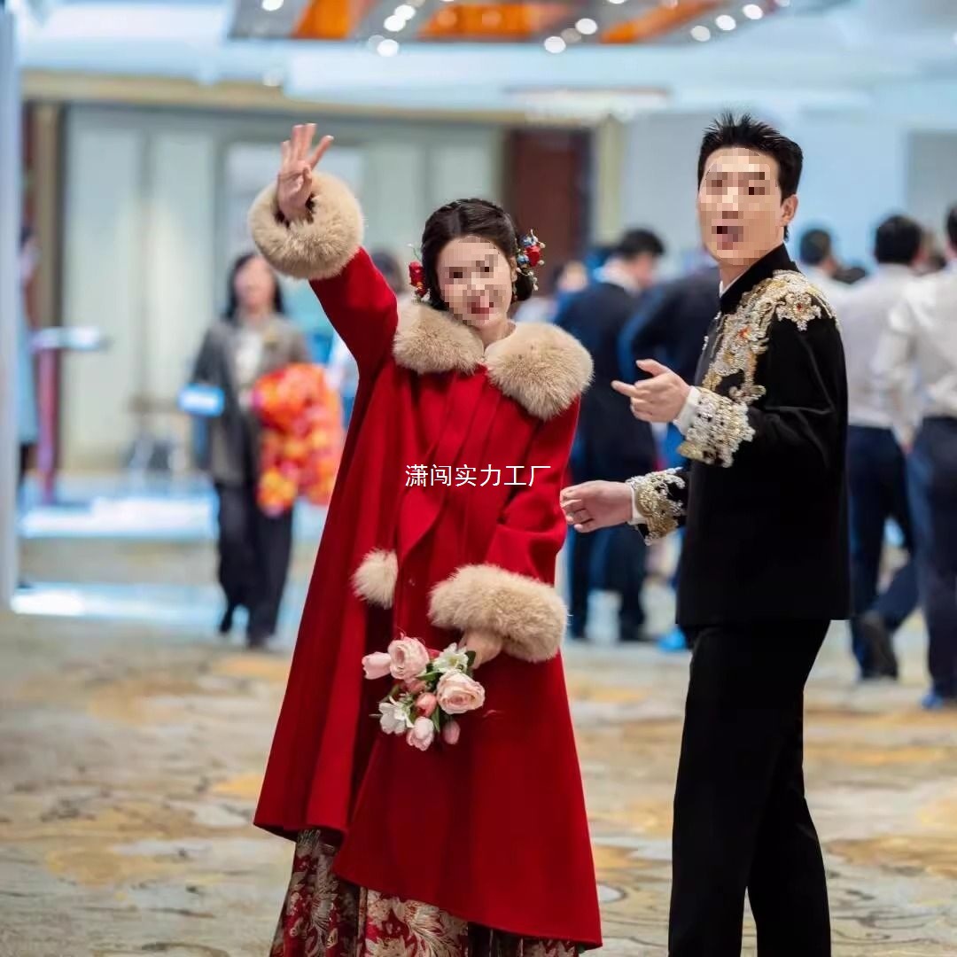 红色毛呢大衣女新年结婚敬酒服2024秋冬款小众喜庆年轻毛呢外套