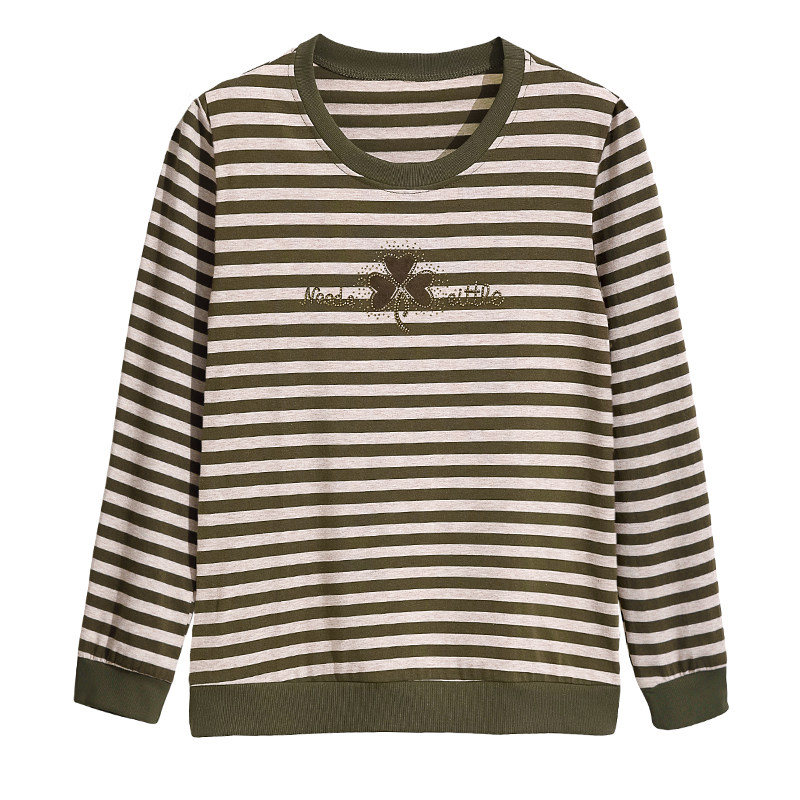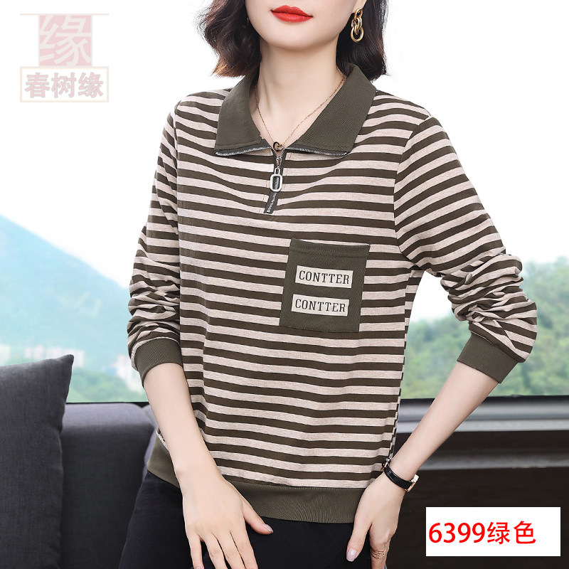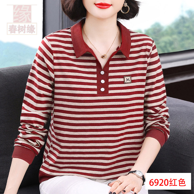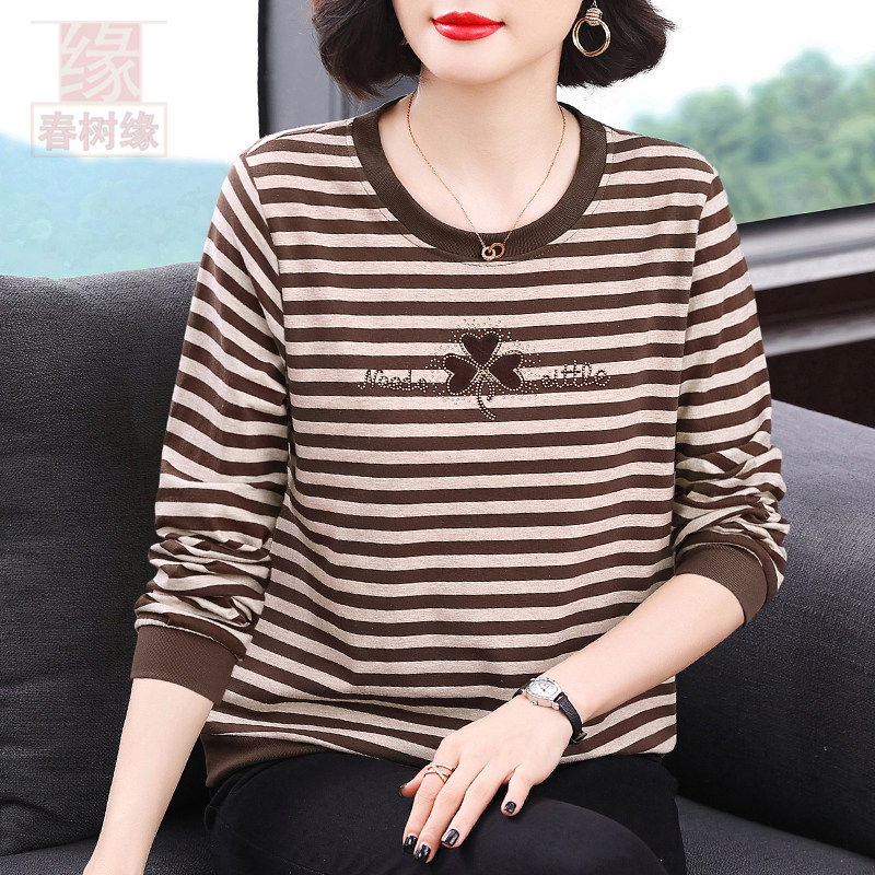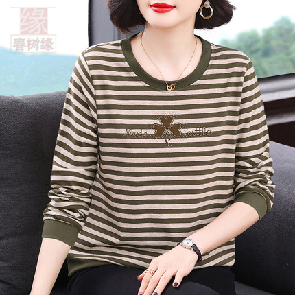 纯棉条纹长袖T恤女春秋2025新款中年妈妈宽松卫衣圆领宽松打底衫