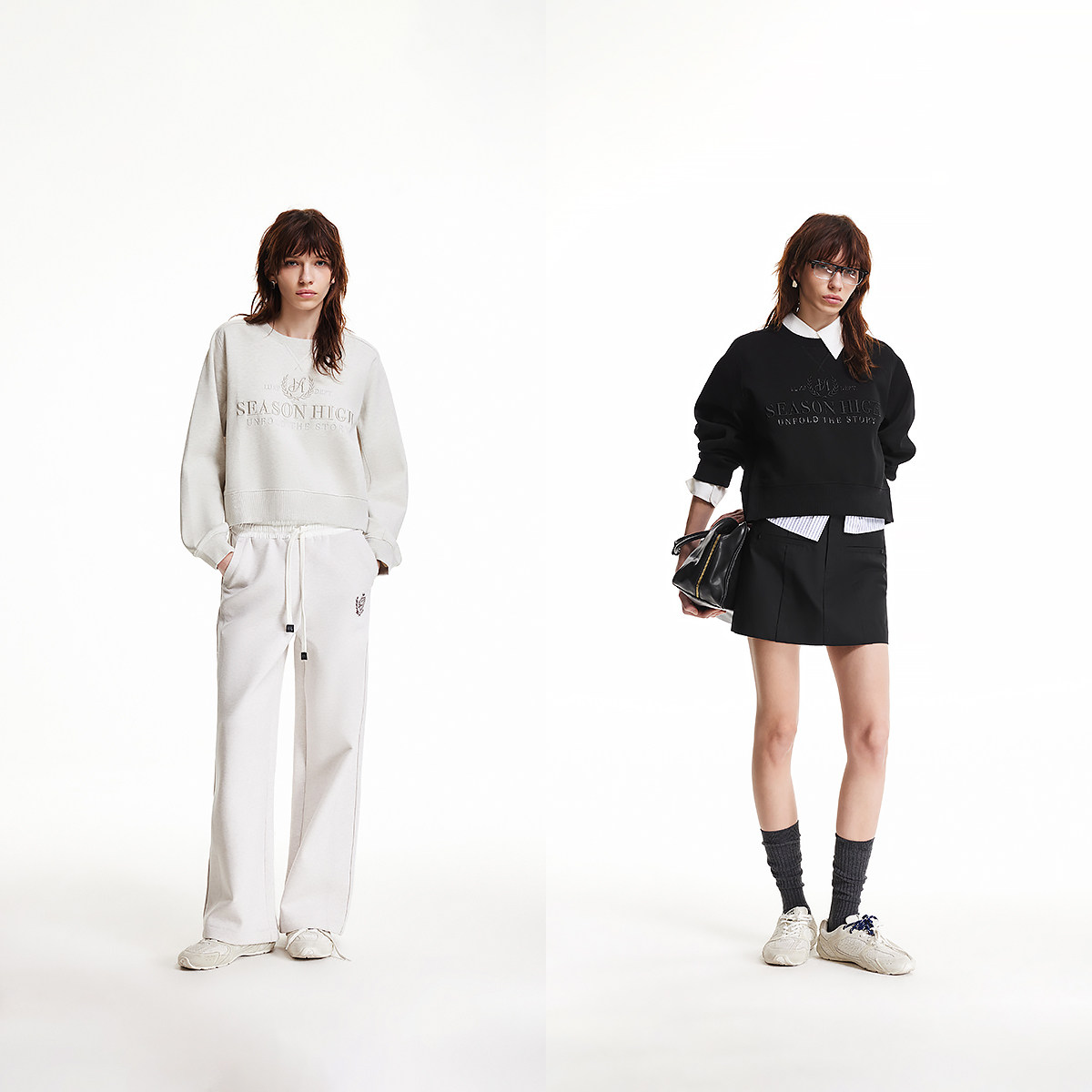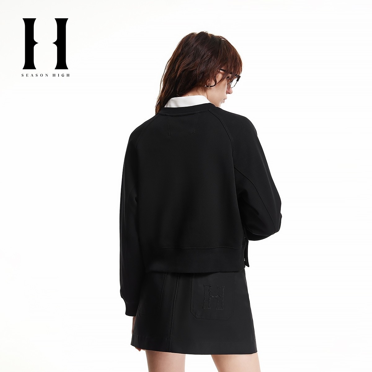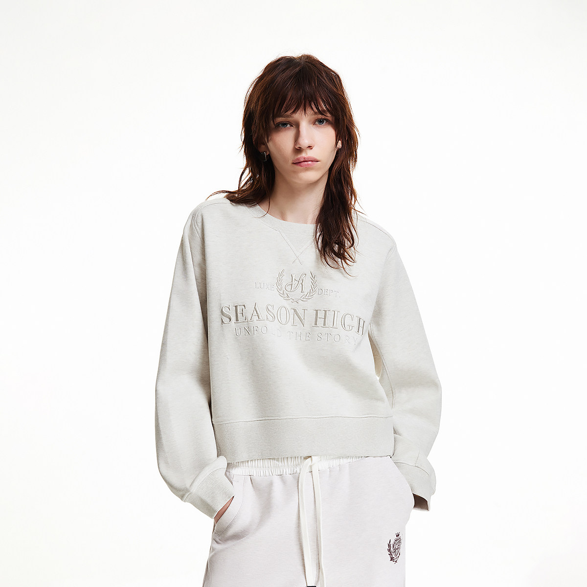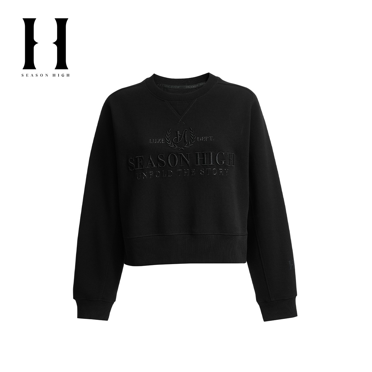SEASON HIGH冬季潮流舒适优雅时尚出街精致立体刺绣圆领卫衣女装