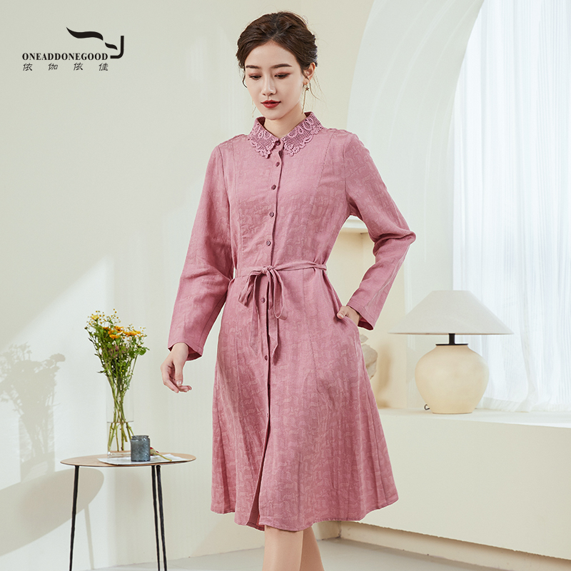 依伽依佳2022秋季新款气质百搭优雅A字中长款连衣裙女EECL014