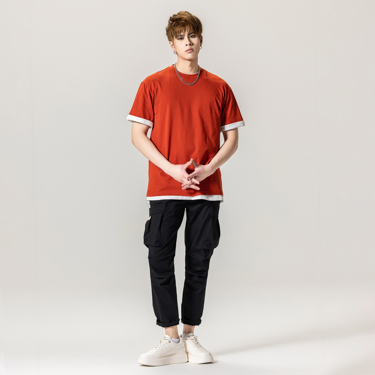 【福利款】PINLI品立夏季新款男士圆领落肩纯色短袖T恤打底衫