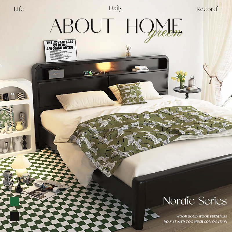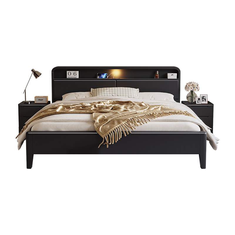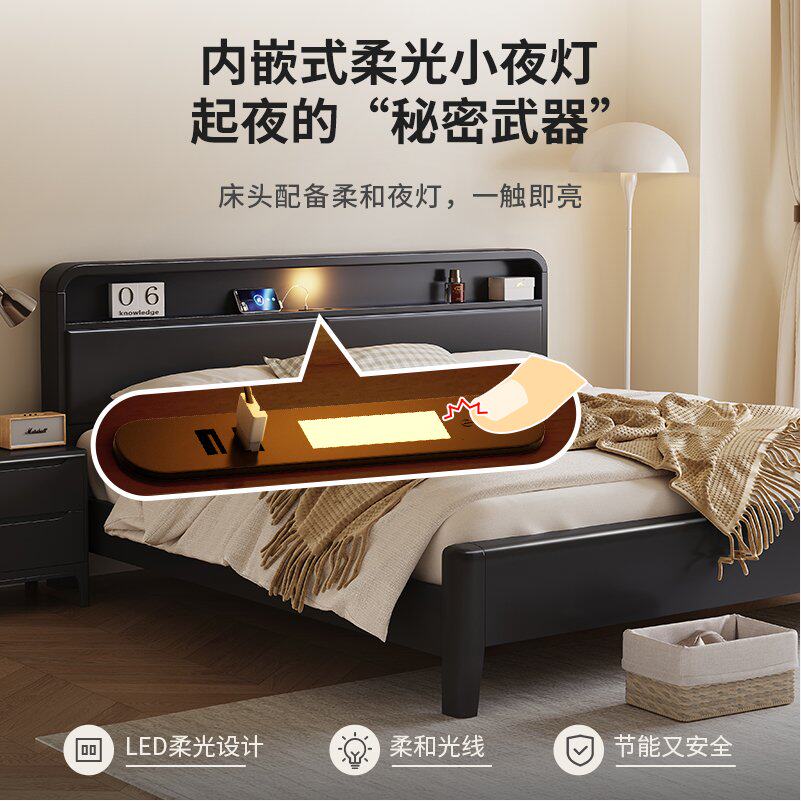 尚品宅配北欧实木床黑色现代简约储物床1.8米1.5双人床复古卧室经