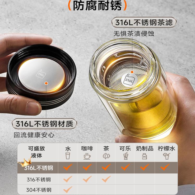 苏泊尔双层玻璃杯2024新款耐高温办公室泡茶商务一键开合男士水杯
