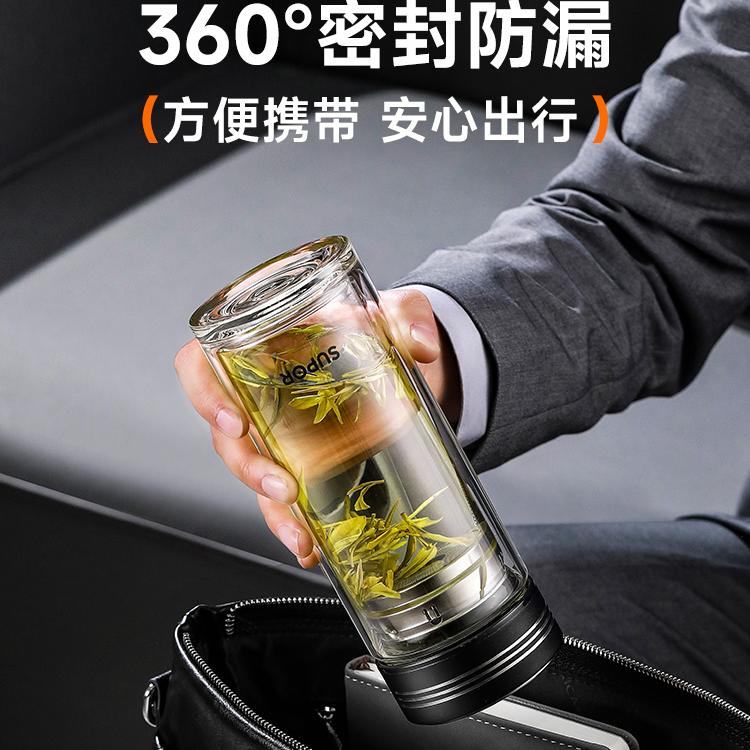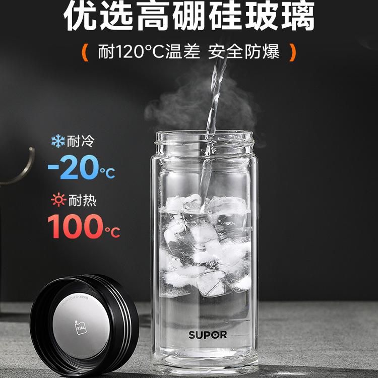 苏泊尔双层透明玻璃杯耐高温便携