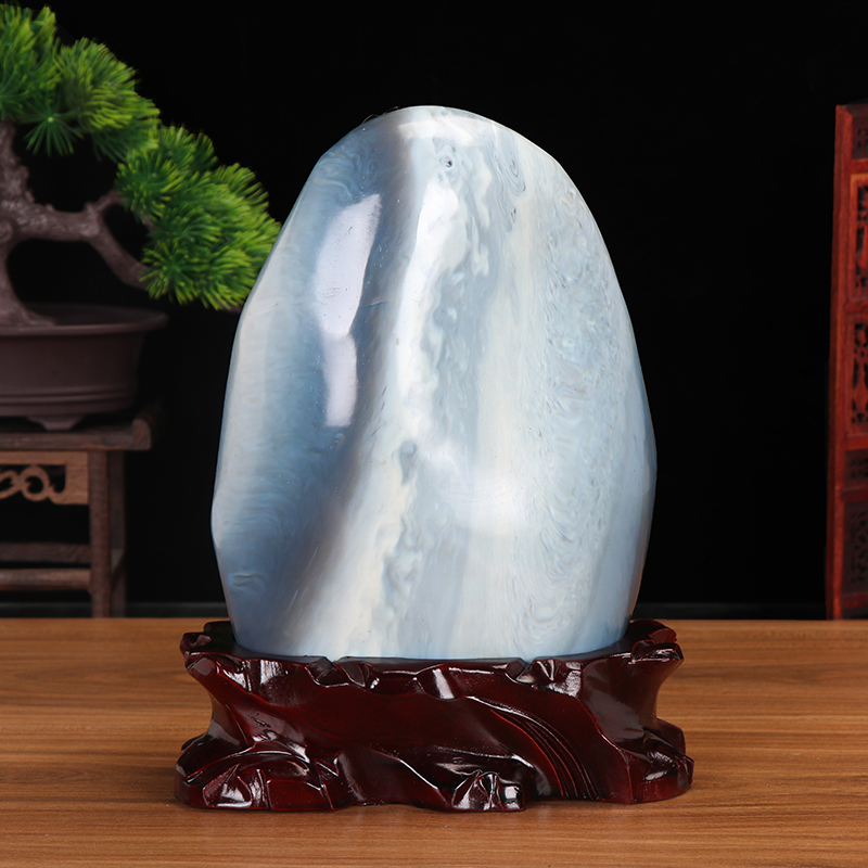玛瑙原石摆件蓝玉髓天然观赏奇石