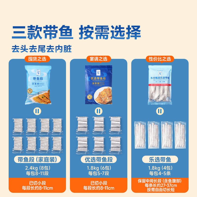 东方甄选带鱼段新鲜冷冻中段东海海鲜鱼块水产深海鱼生鲜食品