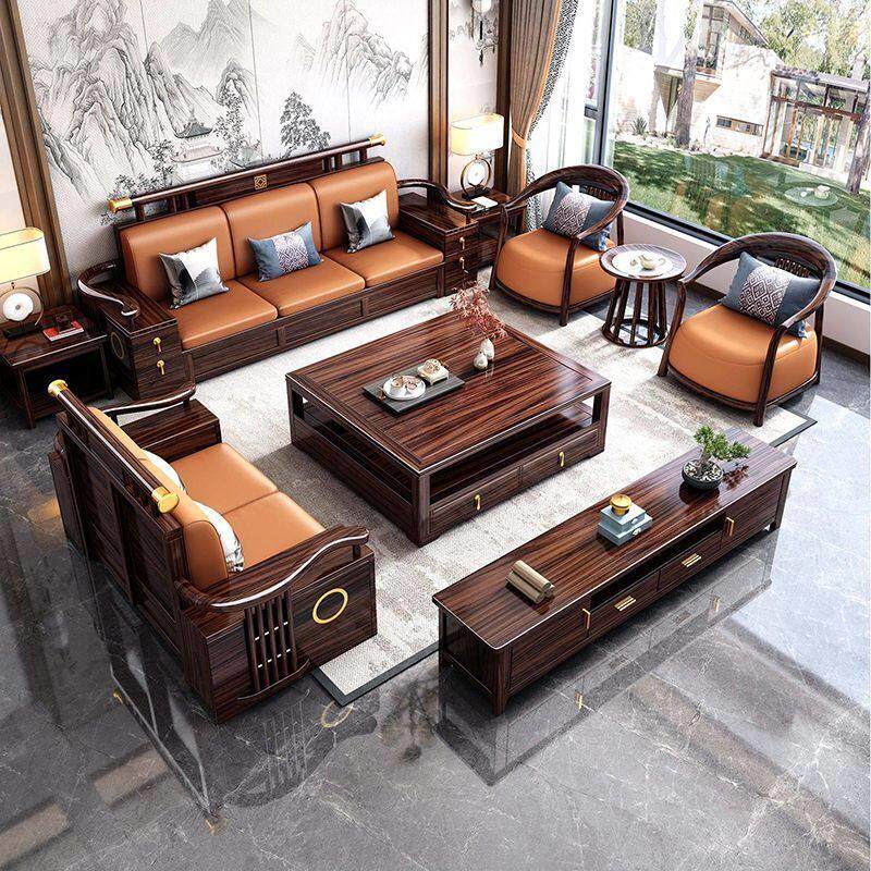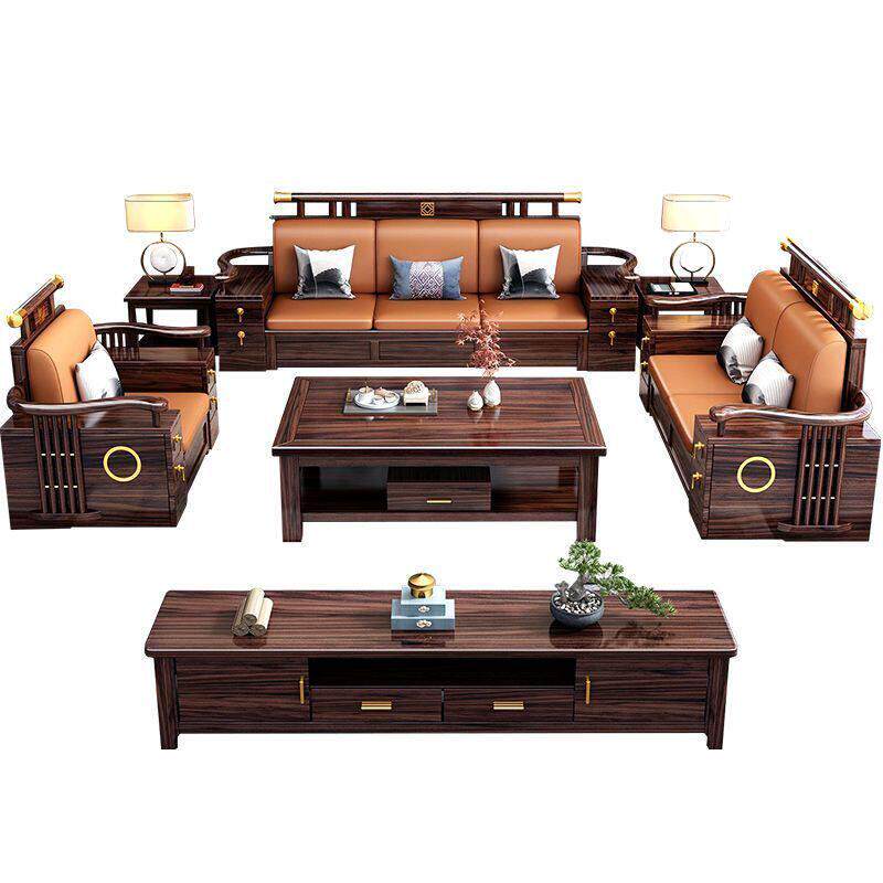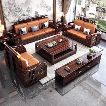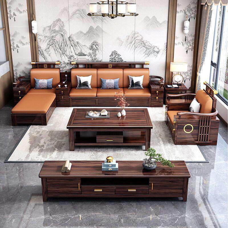 乌金木新中式沙发组合中国风全实木冬夏两用高端客厅储物别墅家具