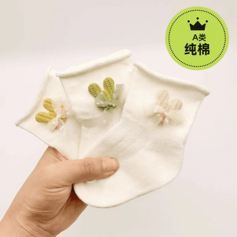婴儿袜子春秋薄款新生儿宝宝卡通中筒袜纯棉松口不勒可爱儿童短袜