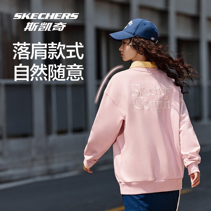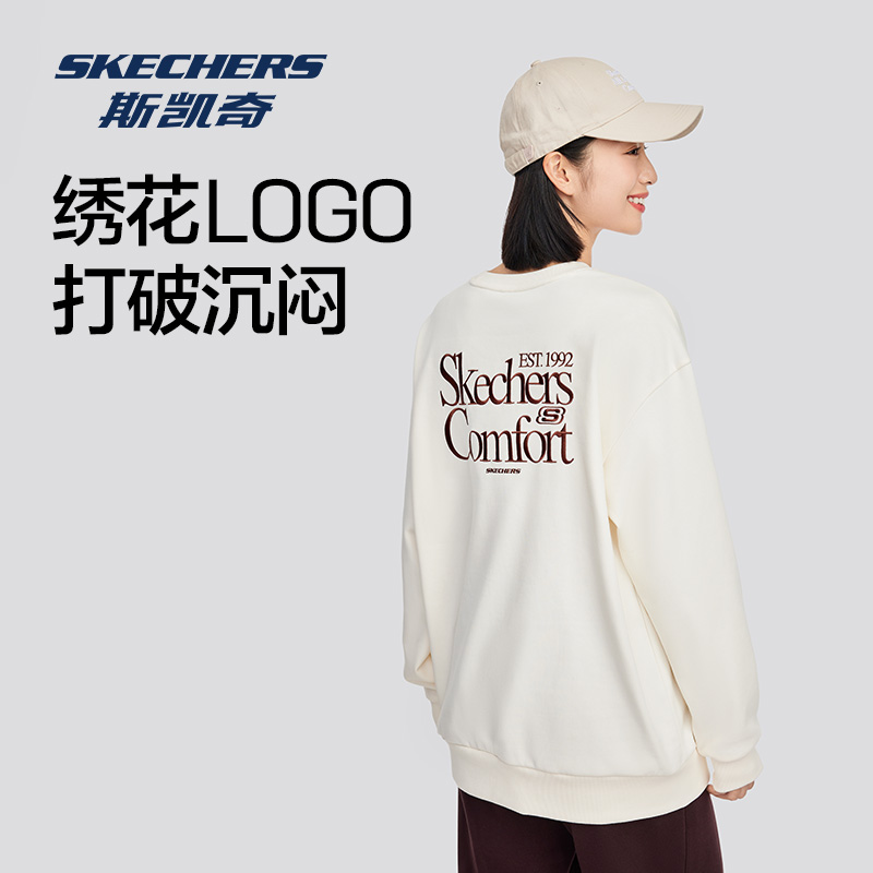 Skechers斯凯奇2025新品男女同款个性绣花卫衣松弛感落肩舒适上衣